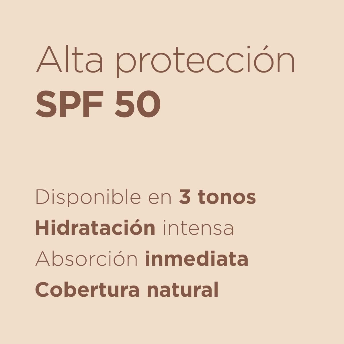 Natural coverage. Very high protection with SPF50, UVA and UVB
