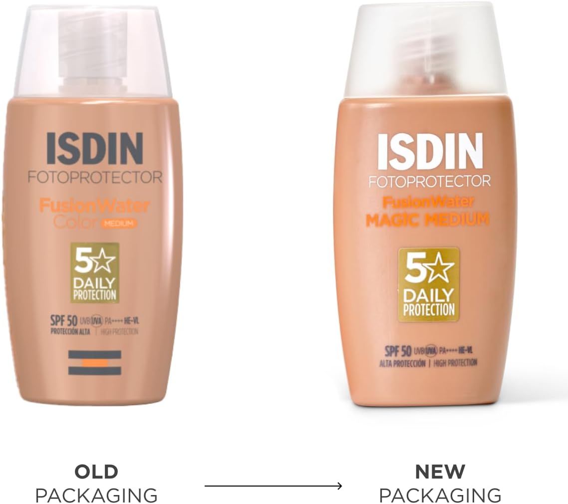 ISDIN Fusion Water Color SPF 50 (Medium) 50ml , Tinted daily facial sun cream , Ultra-light texture