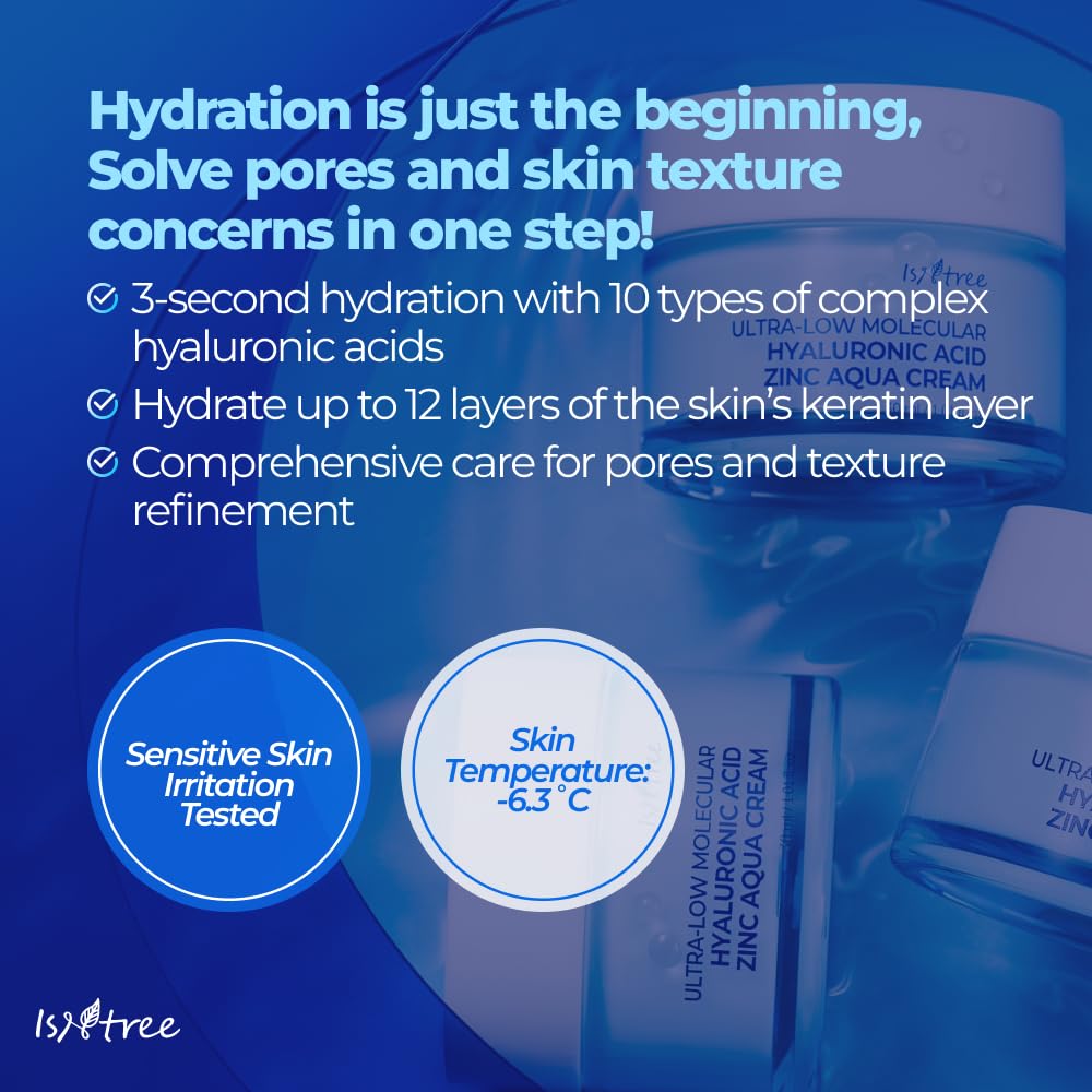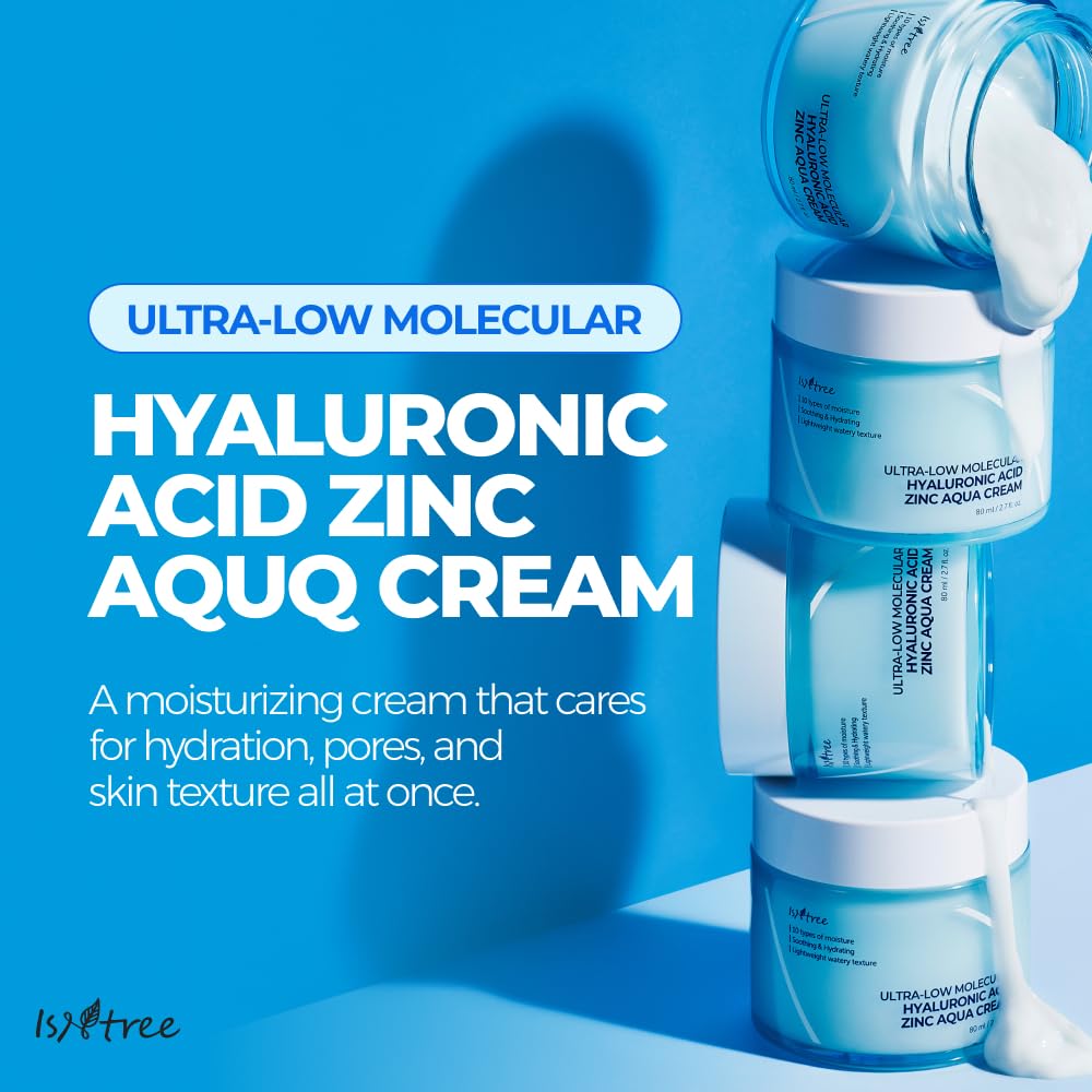 Isntree Ultra-Low Molecular Hyaluronic Acid Zinc Aqua Cream 80Ml, 2.71 Fl Oz | Korean Skincare | Hyaluronic Acid | Pore Care | Cooling Effect | Hydrating Face Moisturizer