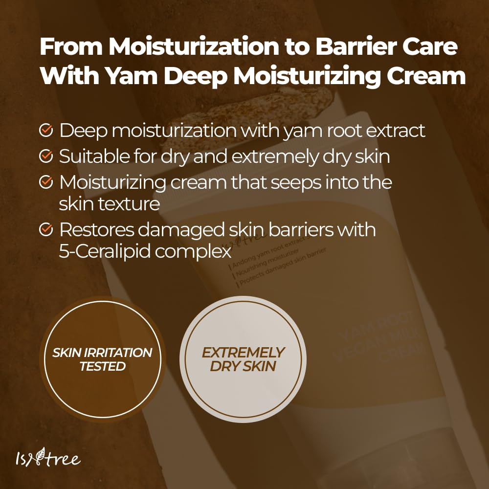 Isntree Yam Root Vegan Milk Cream 80Ml, 2.7 Fl.Oz | Nourishing Moisturizer | Vegan Milk Moisturizer | Korean Skincare