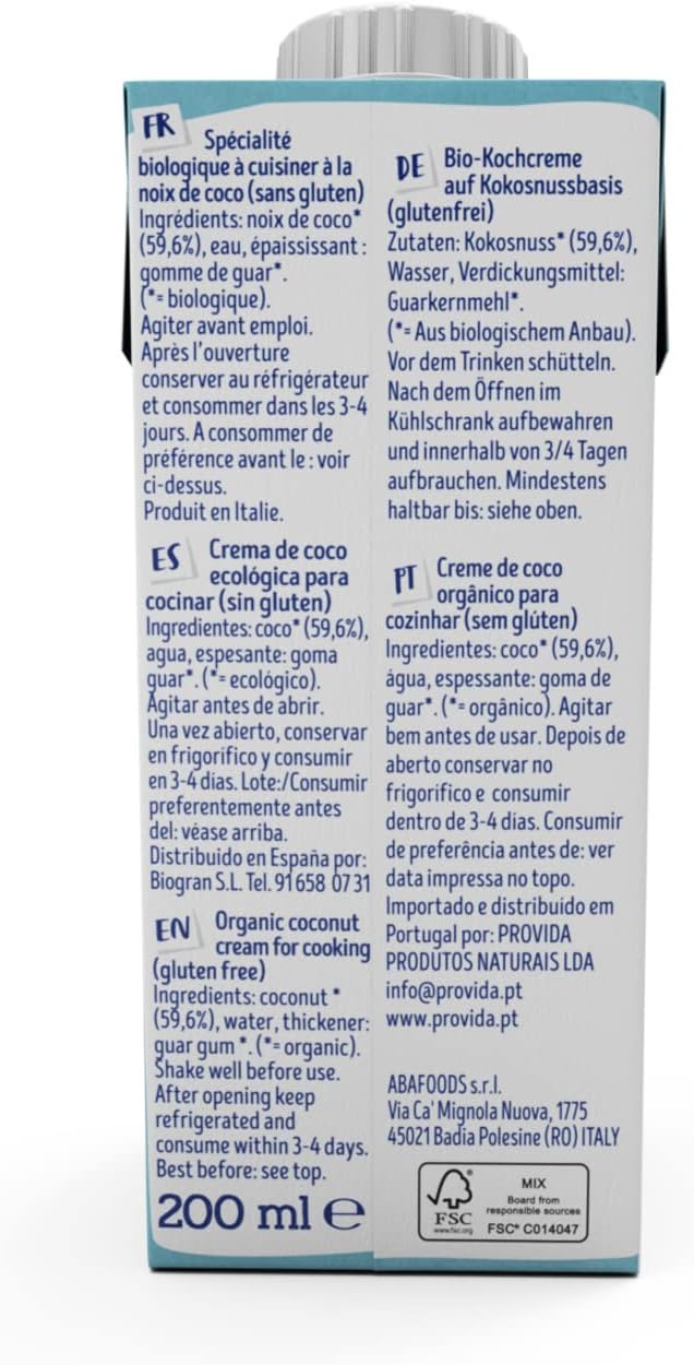 Product description Org Coconut Cream for Cooking 200 ML Safety Warning May contain tree nuts. High in saturated fat. Store in a cool, dry place. Once opened, consume within 3 days