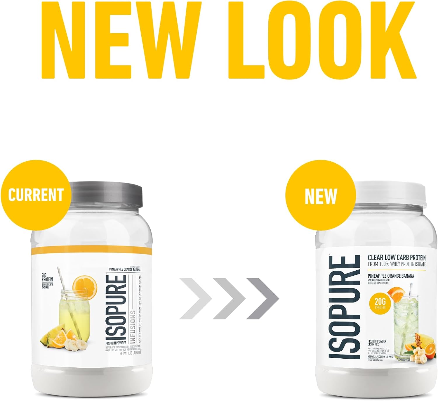 Isopure 100% Pure Whey Isolate Protein Powder Infusions, Lactose Free, Gluten Free, Naturally Flavored, Pineapple Orange Banana, 20G Protein Per Serving, 1.9 Lb, 36 Servings