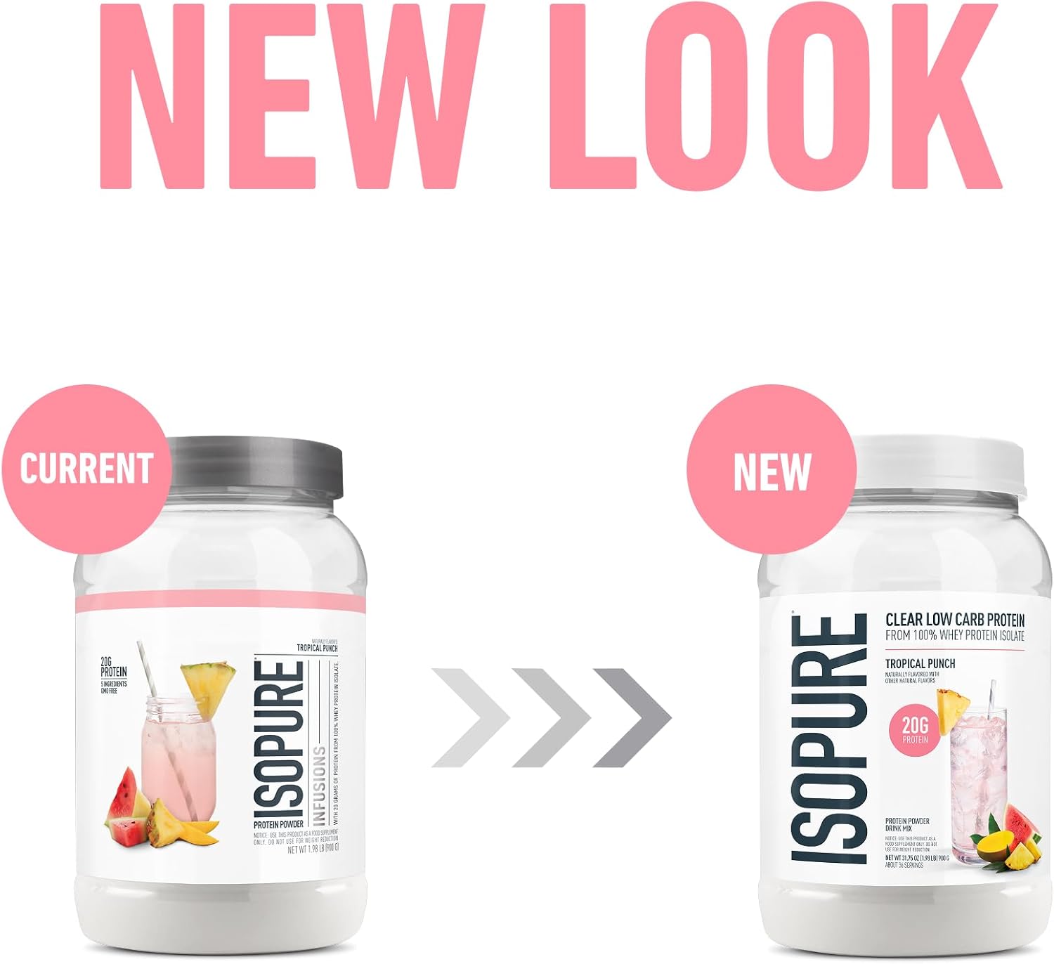 Isopure 100% Pure Whey Isolate Protein Powder Infusions, Lactose Free, Gluten Free, Naturally Flavored, Tropical Punch, 20G Protein Per Serving, 1.9 Lbs, 36 Servings