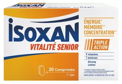 Isoxan Vitality Senior 20 Tablets Is A Food Supplement That Helps To Maintain Physical And Intellectual Vitality For Adult Over 50 Years. It Contains: Vitamins B2, B3, B6, B9, B12, C, Iron And Magnesium That Contribute To Reduce Fatigue, Selenium, Manganese, Zinc, Copper And Vitamins C, E, B2 That Contribute To Protect The Cells Against Oxidative Stress, Vitamins B1, B3, B6, B9, B12, C And Magnesium That Contribute To Normal Psychological Functions, Zinc And Iron That Contribute To Normal Cognitive Function (Learning, Concentration, Memory), Vitamin B6 That Contributes To Regulate Hormonal Activity, Lutein, Ginseng