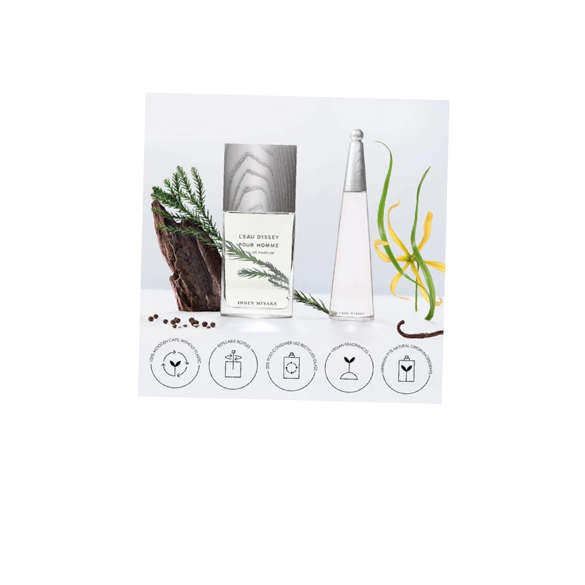 Top Notes:Sichuan Pepper&Middle Notes:Fir&Base Notes:Cedar Wood&Fragrance Category:Aquatic, Woody&Sustainability:Refillable Packaging Ocean-Inspired Fragrance Look At The Sparkling Reflections Of The Ocean And Feel How It Invites You To Adventure - To Discover The Unknown And To Cross Your Own Boundaries. Issey Miyake L'Eau D'Issey Pour Homme Eau De Parfum For Men Captures The Intense And Captivating Fragrance Of The Ocean Created For Contemporary Explorers. Let Yourself Be Swept Away By The Power Of This Mysterious Aroma. A Woody And Aqueous Fragrance Composition For Men The Bold Intensity Of The Ocean Is Captured By The Perfume Designer Sophie LabbĂ© Contains 92% Natural Ingredients And Ethically Sourced Ingredients Composition Of The Fragrance: The Fragrance Opens With A Spicy Sichuan Pepper Accent. It Is Followed By The Aroma Of Pine Balm That Highlights The Power And Intensity Of The Fragrance. Finally Comes Cedar Wood, Which Leaves An Unforgettable And Masculine Impression. Pepper, Fir Balsam And Cedar Wood Are 100% Natural And Respect The Environment They Come From. Story Of The Fragrance: For The First Time, The Iconic Bottle Of LâEau DâIssey Pour Homme Offers 150 Ml Refills. Its 100% Wooden Cap, Made From A Single Piece Of Wood, Ensures The Unique Design Of Each Bottle. It Also Reduces The Emissions Of Co? By 55% In Comparison With Previous Editions. The Fragrance, As Strong As The Ocean, Is Thus Enclosed In Packaging That Respects Nature Other Information:Manufacturer/Importer: Shiseido Europe, 56/A, Rue Du Faubourg Saint-Honore, Paris 75008, France Https://Corp.Shiseido.Com/En/Scp/Inquiry/Mail/Form.Php About The Brand:Class Issey Miyake Issey Miyake Fragrance | Issey Miyake Started His Company Back In 1970. The Designer Was Born In 1938 In Hiroshima And Eventually Became A Young Man With A Refined Sense Of Style And A Special Understanding Of Different Fabrics. He Was Not Afraid To Go Against The Flow And Leave Behind Outdated Tradition - And It Did Pay Off For Him. In 1992 And After Many Successes In The Fashion World, He Entered The World Of Perfumery. With His Fragrances, Miyake Aimed To Celebrate Women As Well As Japanese Tradition, Culture And Nature. Lately The Brand Has Been Producing Perfume For Both Women And Men. Try The Mysterious LâEau DâIssey Bleue Pour Homme Or The Classically Feminine LâEau DâIssey Ingredients:Ingredients Issey Miyake L'Eau D'Issey Pour Homme Complete Ingredients List Alcohol, Parfum (Fragrance), Aqua (Water), Tetramethyl Acetyloctahydronaphthalenes, Linalyl Acetate, Linalool, Limonene, Hexamethylindanopyran, Juniperus Virginiana Oil, Citrus Limon (Lemon) Peel Oil, Pinene, Butyl Methoxydibenzoylmethane, Diethylamino Hydroxybenzoyl Hexyl Benzoate, Pelargonium Graveolens Flower Oil, Citronellol, Eugenol, Coumarin, Beta-Caryophyllene, Terpinolene, Lavandula Oil/Extract, Amyl Salicylate, Acetyl Cedrene, Citral, Geraniol, Geranyl Acetate, Citrus Aurantium Bergamia (Bergamot) Peel Oil, Citrus Aurantium Peel Oil, Vanillin, Santalum Album (Sandalwood) Oil, Pogostemon Cablin Oil, Terpineol, Santalol, Camphor, Alpha-Terpinene, Isoeugenol, Cinnamomum Zeylanicum Bark Oil, Cinnamal, Benzyl Benzoate, Menthol, Carvone, Ci 60730 (Ext. Violet 2), Ci 14700 (Red 4), Ci 42090 (Blue 1) The Manufacturer Is Responsible For The Ingredients Of The Product. We Recommend Checking The List Of Product Ingredients Directly On Its Packaging Due To Potential Changes