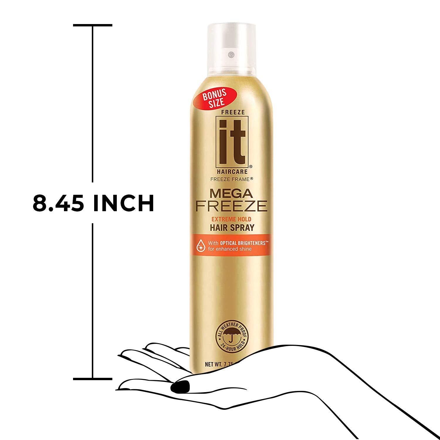 It Haircare Mega Freeze Extreme Hold Hair Spray | 7.75 Oz. | Vitamin B5 & Hydrolyzed Wheat Protein | Humidity Resistant | Optical Brighteners For Enhanced Shine | 24 Hour Hold Fast-Dry | Bonus 4 Pack