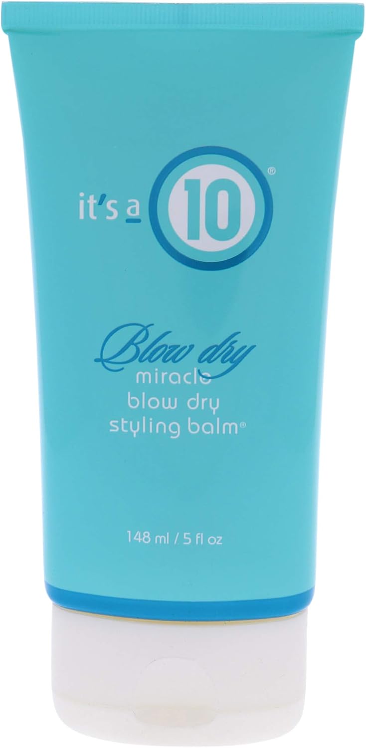 About this item GOLD STANDARD - The gold standard in beautiful hair thanks to Itās a 10 Miracle Blow Dry Styling Balm. FRIZZ-FREE - Itās a 10 Miracle Blow Dry Styling Balmās non-greasy cream works into damp or dry hair easily and weightlessly to help eliminate frizz, lock out humidity, define curls, and protect from heat and UV light. NATURAL INGREDIENTS - Infused with Sunflower Seed Extract to soften and shine and Ginkgo Biloba leaf Extract, one of natureās most powerful antioxidants. Vegan, Paraben free and Leaping Bunny Certified. HOW TO - Apply a small amount of balm to palms and smooth through hands - then run fingers evenly through damp hair before blow drying, curling, or styling. Use slightly less balm for refreshing already dry styles. Small, fingertip-sized amount work great as on-the-spot style tamers. ITāS A 10 HAIRCARE - Taking the guesswork out of finding the perfect haircare regime, Itās a 10 Haircare are all about simplifying haircare. Our hair care products provide exceptional results designed to deliver a combination of 10 benefits - all in one bottle. āŗ See more product details,GOLD STANDARD - The gold standard in beautiful hair thanks to Itās a 10 Miracle Blow Dry Styling Balm,FRIZZ-FREE - Itās a 10 Miracle Blow Dry Styling Balmās non-greasy cream works into damp or dry hair easily and weightlessly to help eliminate frizz, lock out humidity, define curls, and protect from heat and UV light,NATURAL INGREDIENTS - Infused with Sunflower Seed Extract to soften and shine and Ginkgo Biloba leaf Extract, one of natureās most powerful antioxidants. Vegan, Paraben free and Leaping Bunny Certified,HOW TO - Apply a small amount of balm to palms and smooth through hands - then run fingers evenly through damp hair before blow drying, curling, or styling. Use slightly less balm for refreshing already dry styles. Small, fingertip-sized amount work great as on-the-spot style tamers,ITāS A 10 HAIRCARE - Taking the guesswork out of finding the perfect haircare regime, Itās a 10 Haircare are all about simplifying haircare. Our hair care products provide exceptional results designed to deliver a combination of 10 benefits - all in one bottle