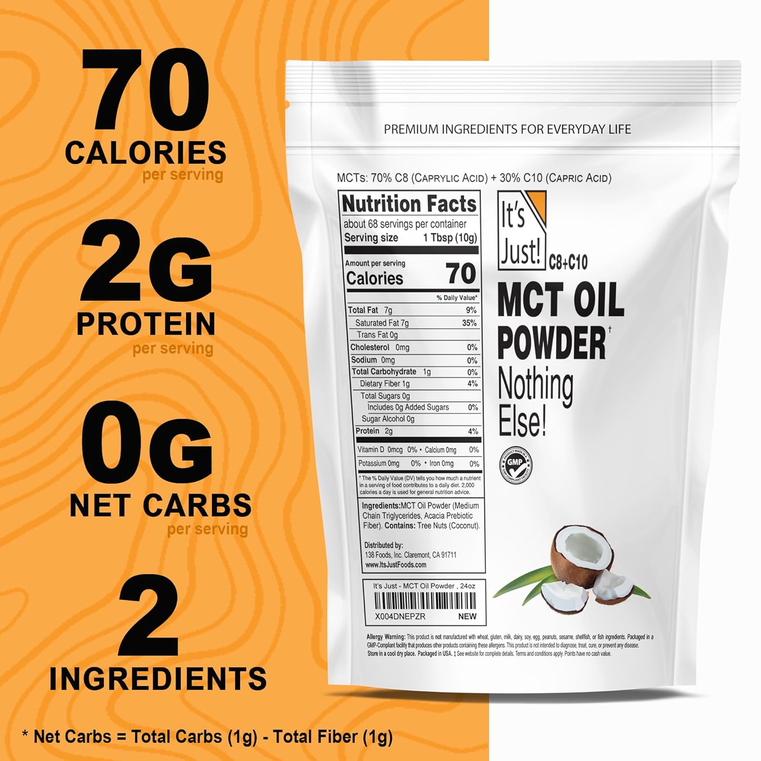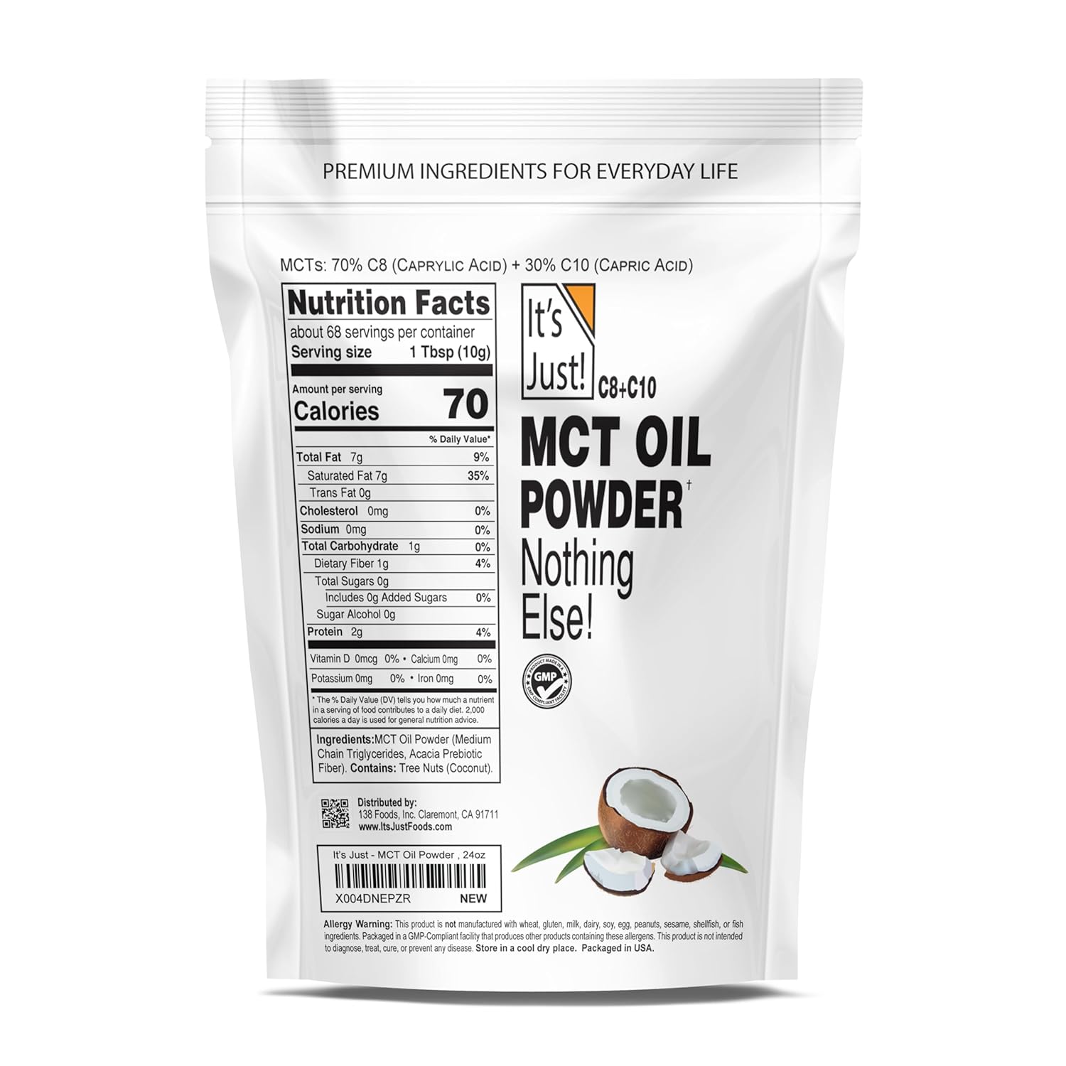 It'S Just - Mct Oil Powder, 70% C8 + 30% C10, Prebiotic Fiber, Fast Fuel For Body & Brain Health, Keto Coffee Creamer, Non-Gmo, 24Oz