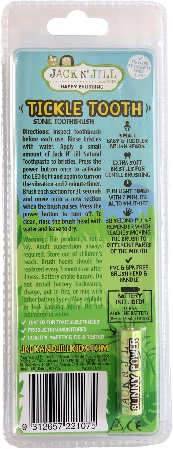 Jack N' Jill Tickle Tooth Sonic Toothbrush & Replacement Head - For Babies, Toddlers, & Kids 0-6 Years, Led Brush Head With Light Timer & 30 Sec Pulse Reminder, Extra Soft Bristles For Gentle Cleaning