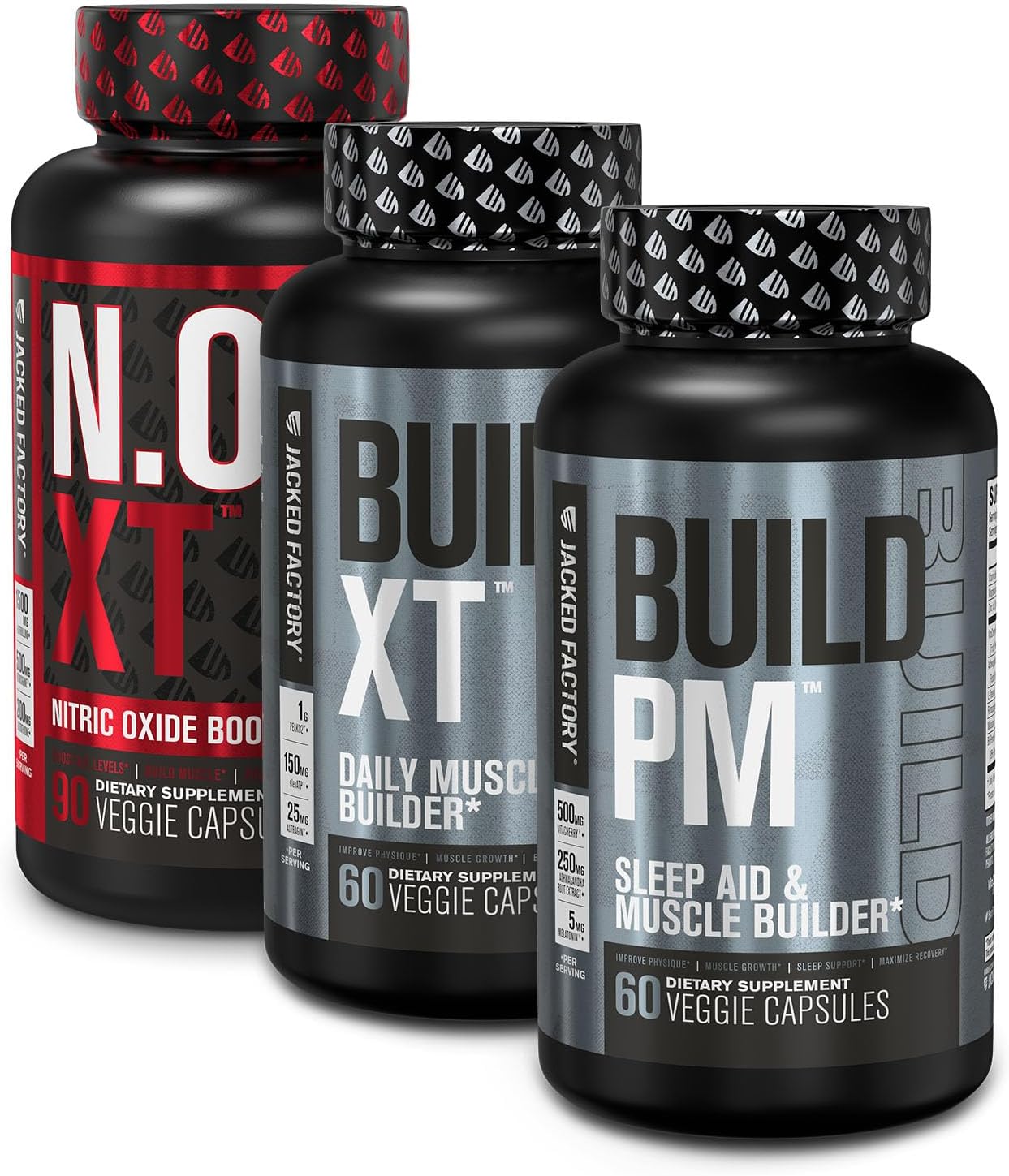 Jacked Factory Am & Pm Muscle Building Stack - N.O. Xt, Build Xt, & Build Pm