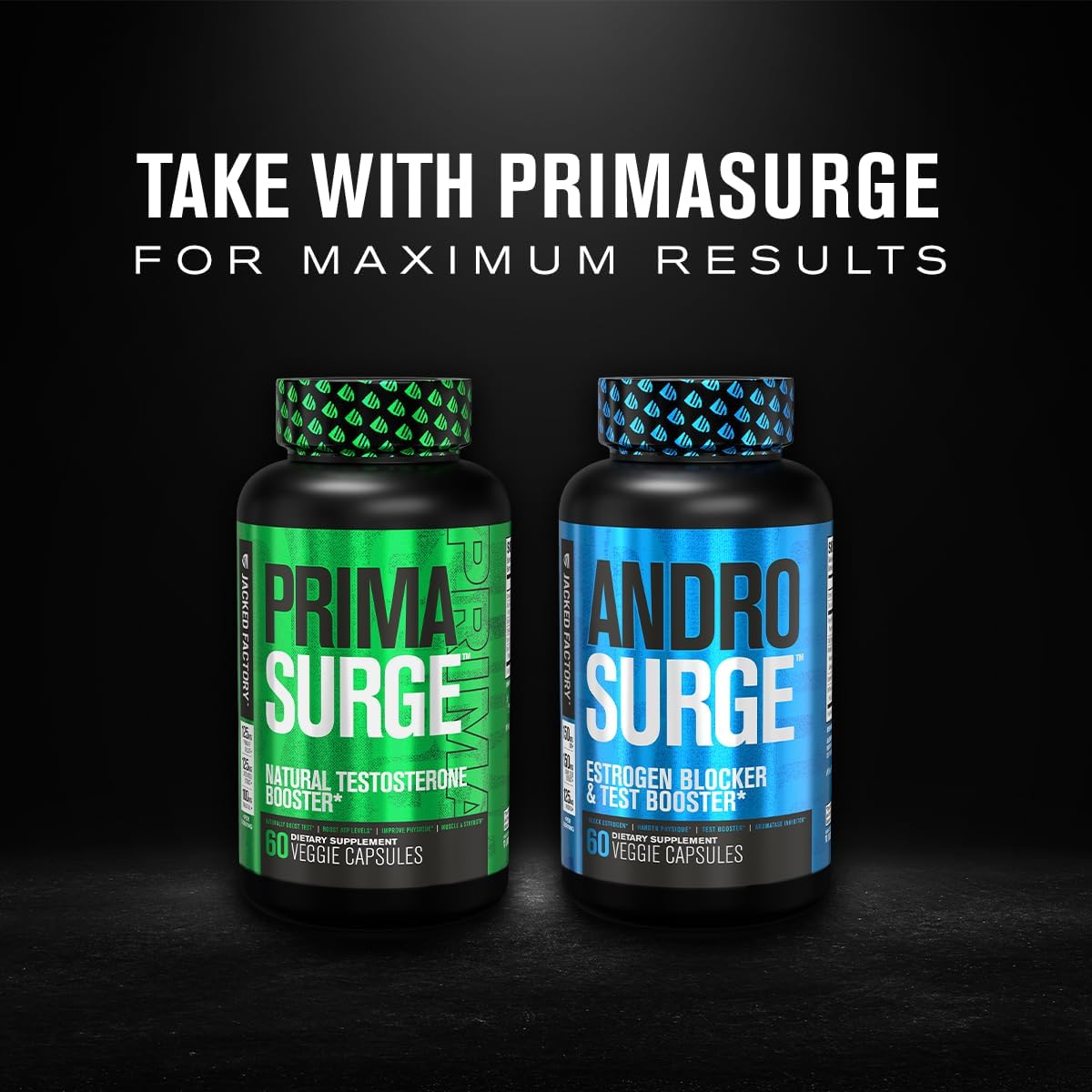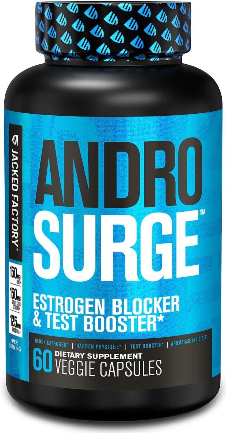 Estrogen Blocker & Testosterone Supplement for Men: Jacked Factory Androsurge is a non-proprietary blend of all-natural ingredients designed to act as an estrogen blocker for men. Androsurge features researched ingredients such as long jack, grape seed extract, and diindolylmethane (DIM) which make it an effective estrogen blocker and testosterone booster for men