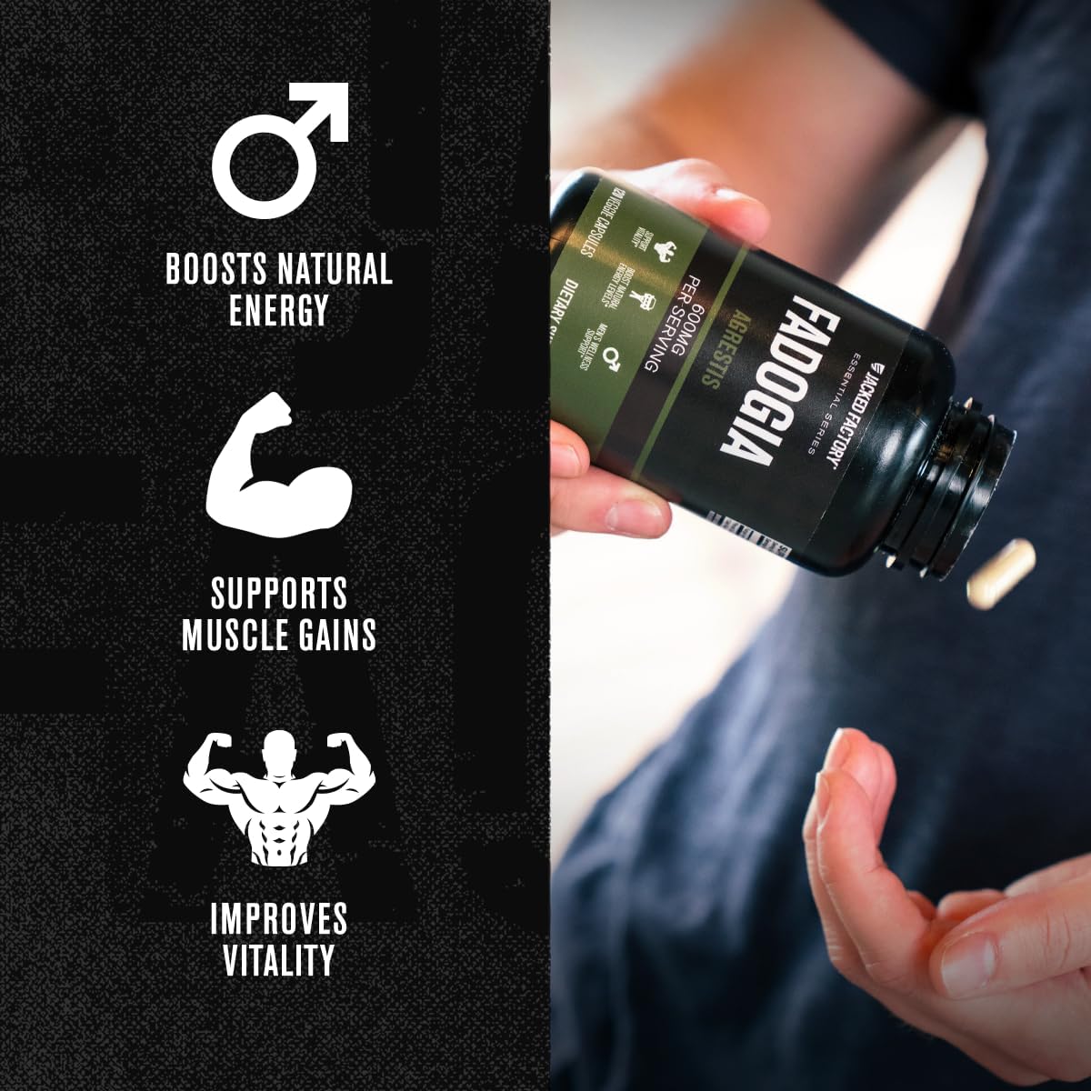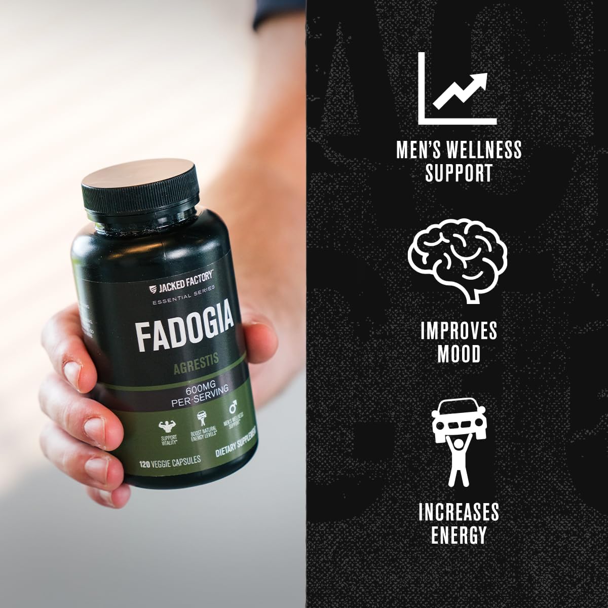 Jacked Factory Essentials Fadogia Agrestis Extract - Fadogia Agrestis 600Mg For Vitality & Energy Support, Enhanced Strength, Endurance, & Muscle Growth - 120 Veggie Capsules