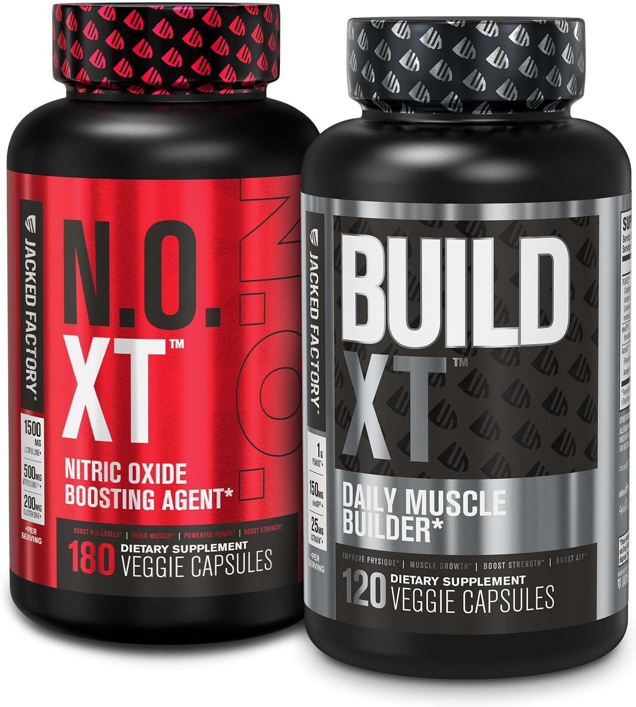 Jacked Factory Muscle Builder Supplement Stack - Build-Xt Muscle Builder & N.O. Xt Nitric Oxide Boosting Agent For Dual Muscle Building Support (60 Day Supply)