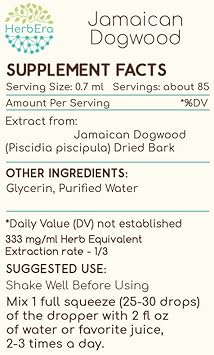 Jamaican Dogwood B60 Alcohol-Free Herbal Extract Tincture, Wildcrafted Jamaican Dogwood (Piscidia Piscipula) Dried Bark (2 Fl Oz)