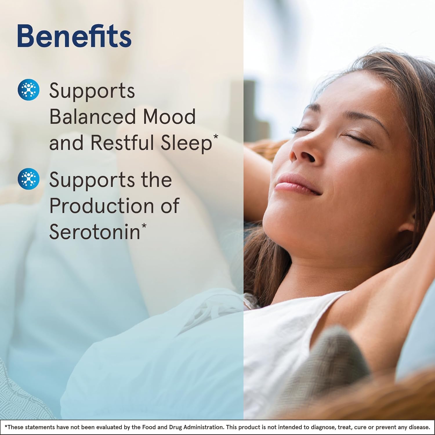 500 mg L-Tryptophan: Support a balanced mood and restful sleep with 500 mg of the essential amino acid L-Tryptophan in a convenient capsule(1)