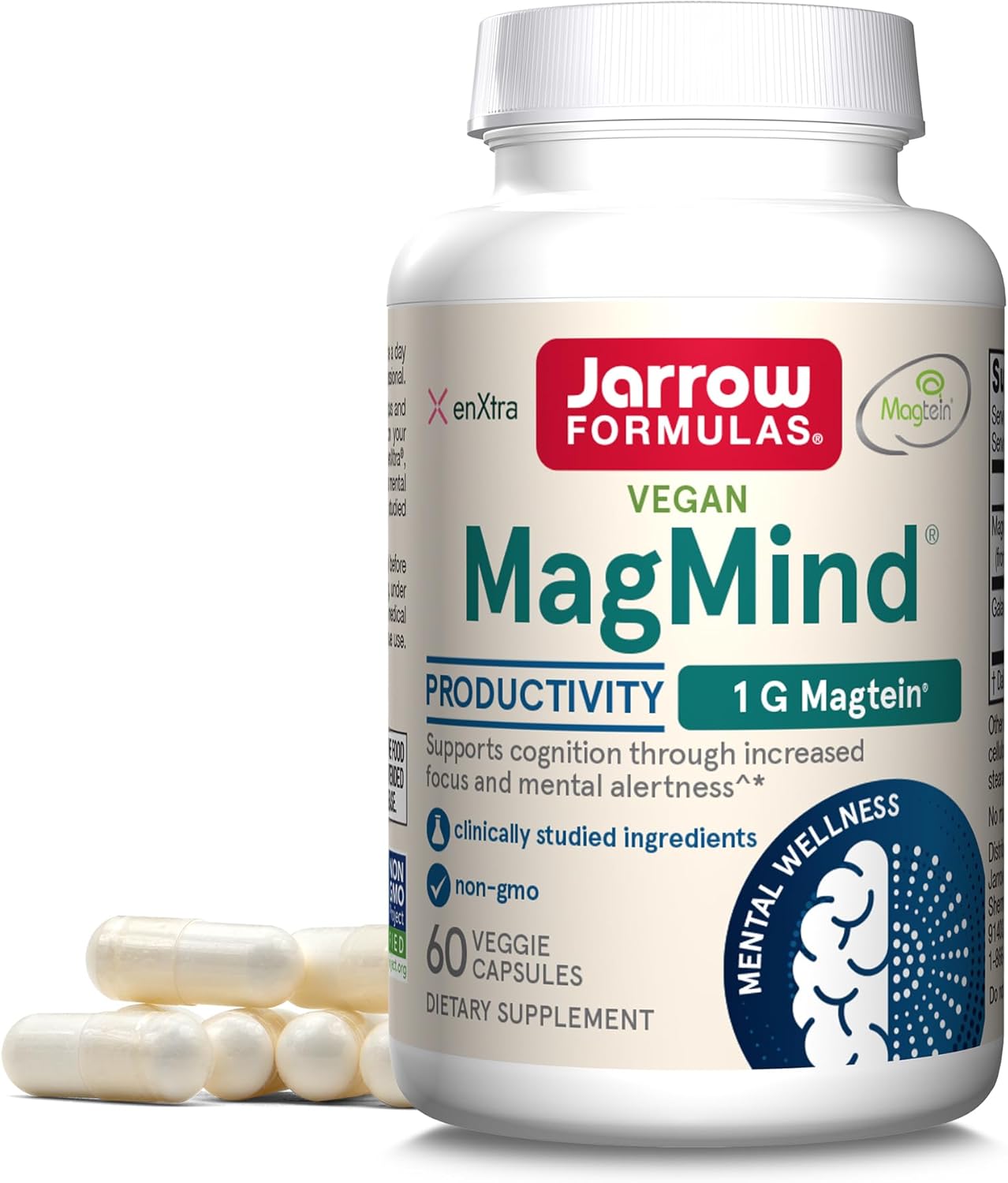 Jarrow Formulas Magmind Productivity With Magtein 1G (Magnesium L-Threonate), And Enxtra 300 Mg, Dietary Supplement For Cognition Support, Mental Wellness Supplement, 60 Veggie Capsules, 30 Day Supply