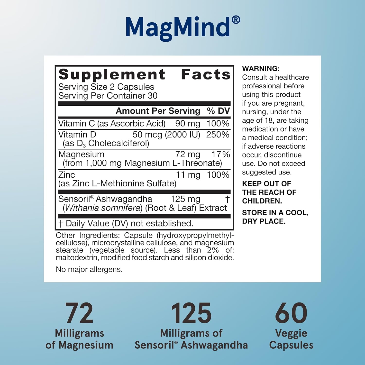 Jarrow Formulas Magnesium L-Threonate, Magmind Immuno-Stress, Dietary Supplement Featuring Ashwagandha And Immunity Support, Vitamins C & D, 60 Capsules, Up To A 30 Day Supply