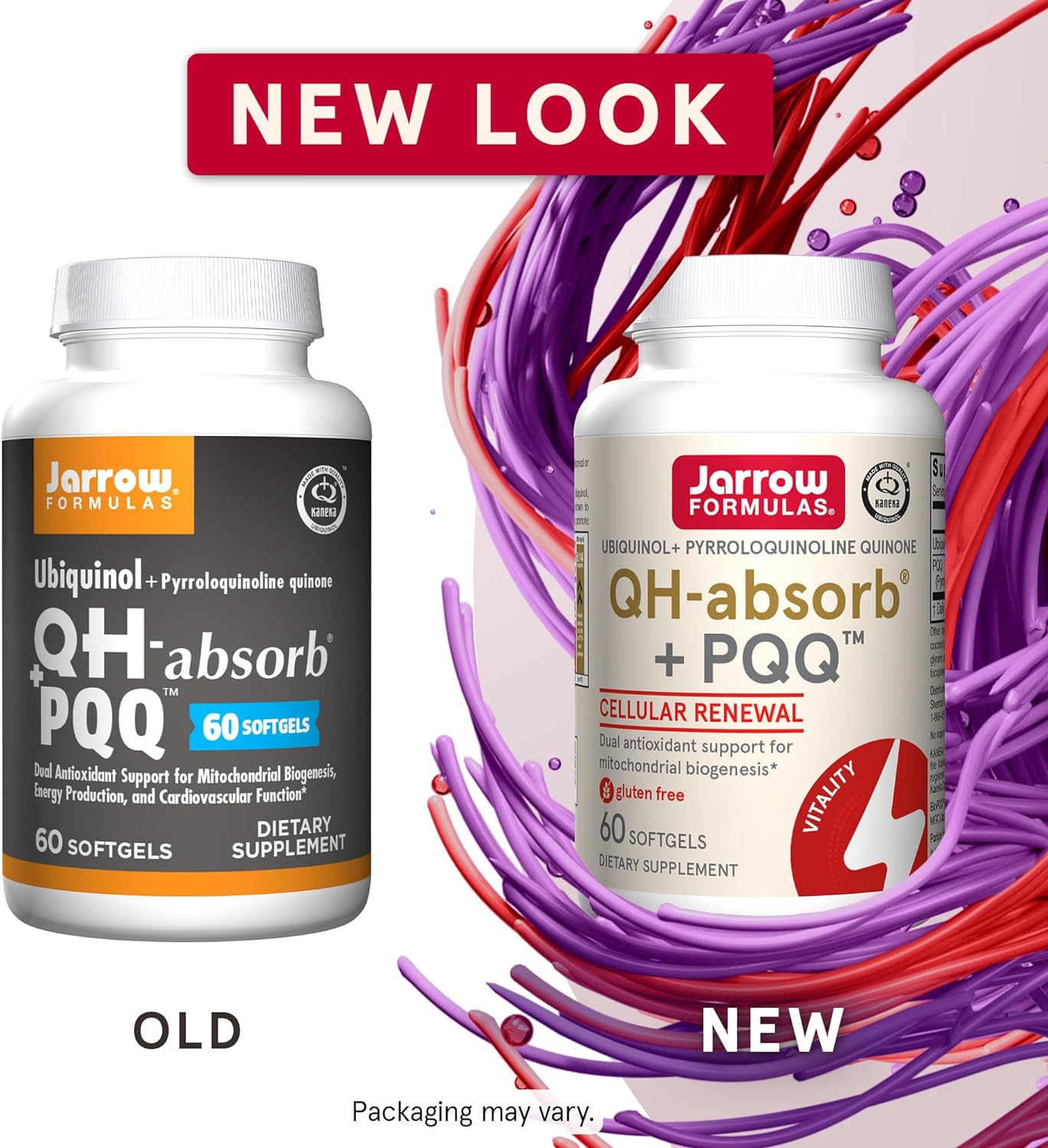 Jarrow Formulas Qh-Absorb + Pqq, Dietary Supplement, Antioxidant Support For Mitochondrial Biogenesis, Cellular Energy Production And Cardiovascular Health, 60 Softgels, 60 Day Supply