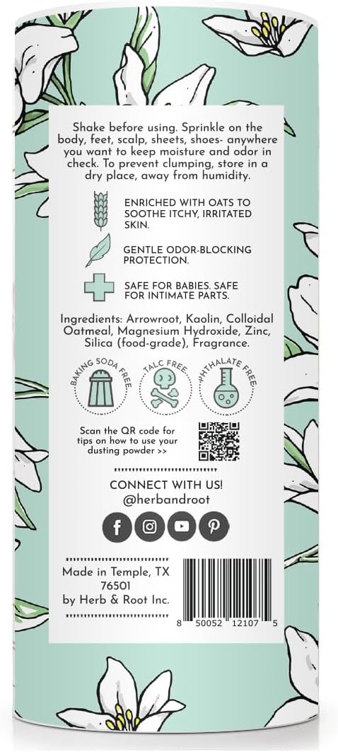 Jasmine Talc Free Dusting Powders Made With Arrowroot, Soothing Oats, Zinc, And Magnesium. Free Of Baking Soda. For Chafing, Deodorizing, Sweating