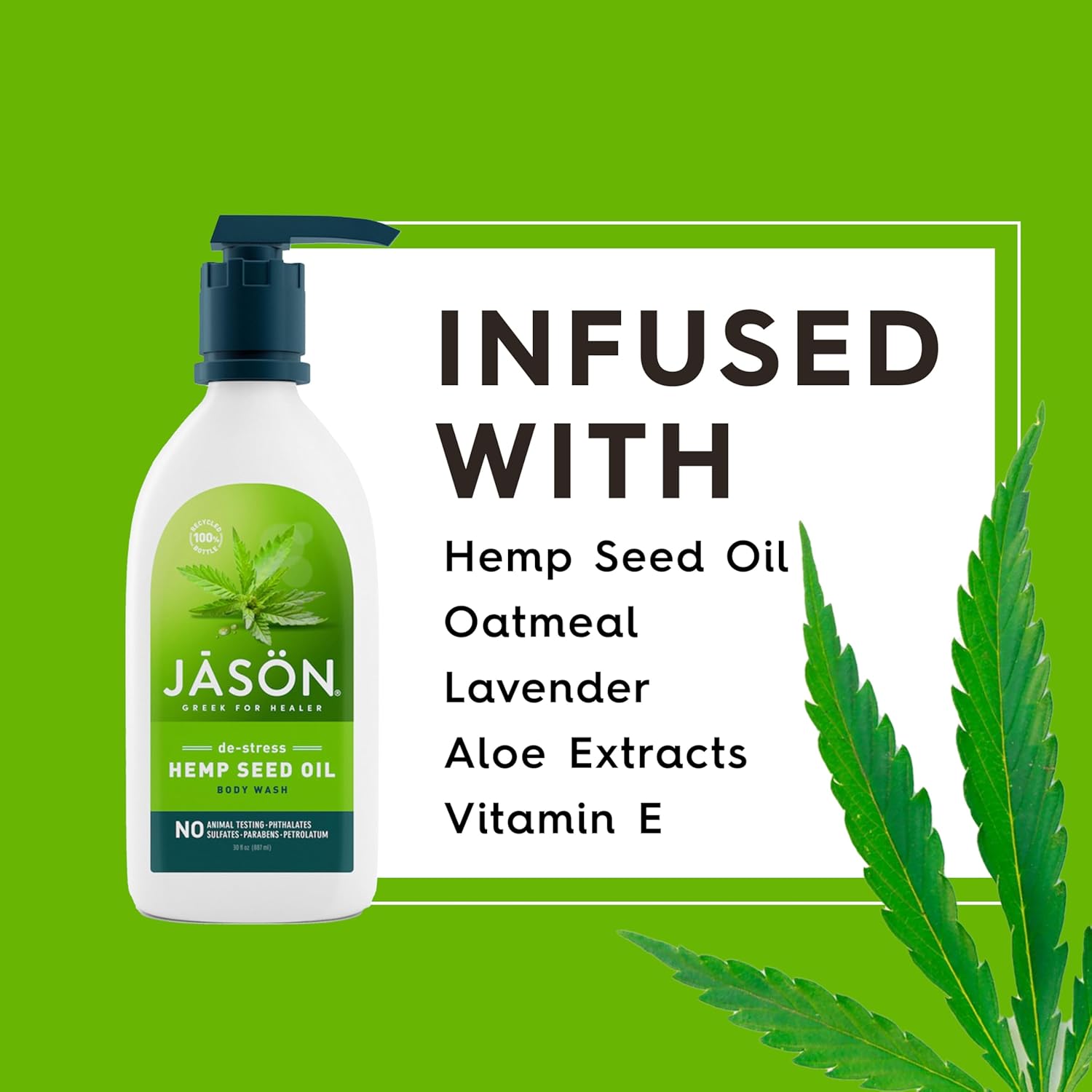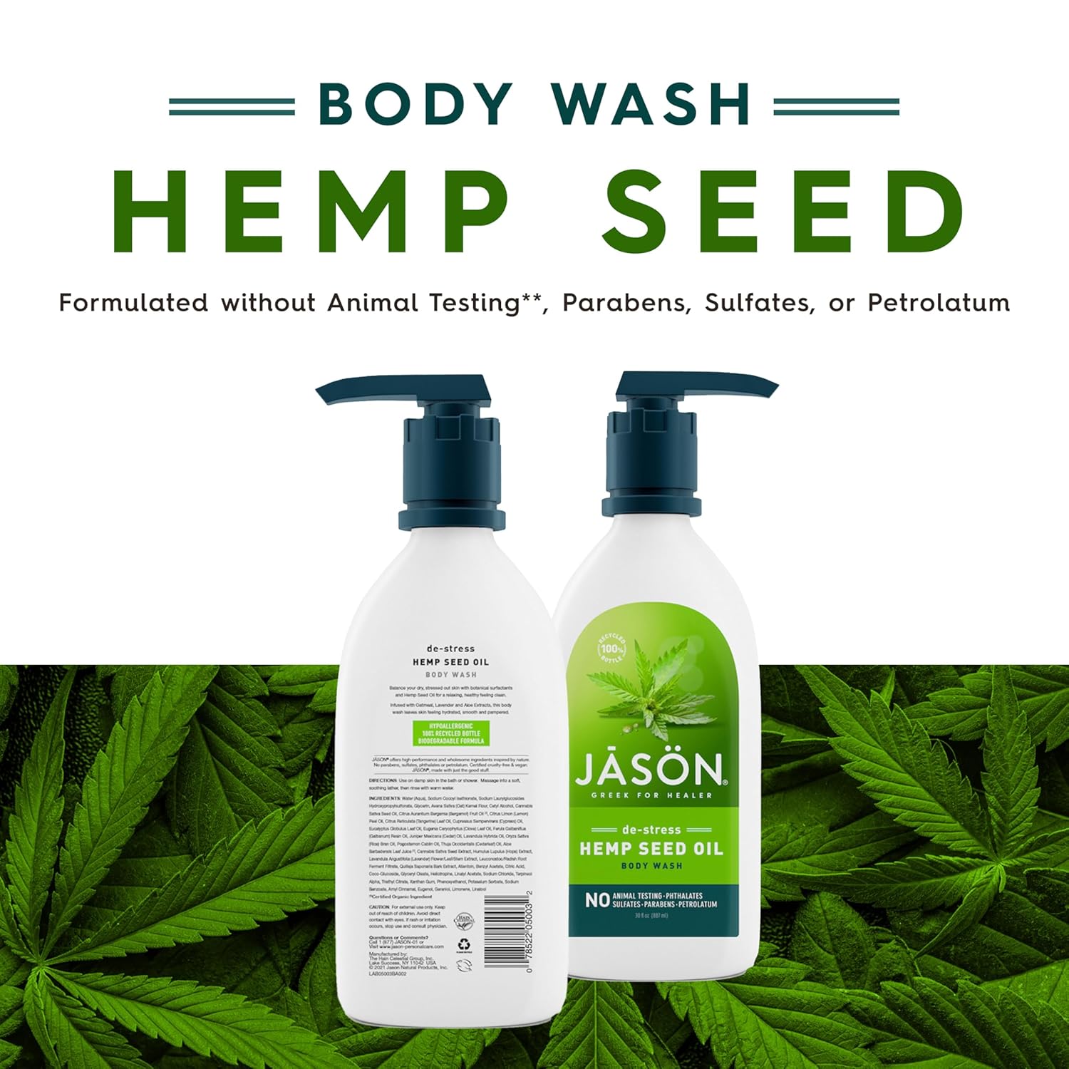 About this item One 30 oz. bottle of Jason De-Stress Cannabis Sativa Seed Oil Body Wash Helps de-stress dry, itchy, irritated skin Crafted with essential fatty-acid rich cold pressed cannabis sativa seed oil A formula inspired by nature's best, free from parabens, harsh sulfates, phthalates and petrolatum Always cruelty-free, never tested on animals See more product details,One 30 oz. bottle of Jason De-Stress Cannabis Sativa Seed Oil Body Wash,Helps de-stress dry, itchy, irritated skin,Crafted with essential fatty-acid rich cold pressed cannabis sativa seed oil,A formula inspired by nature's best, free from parabens, harsh sulfates, phthalates and petrolatum,Always cruelty-free, never tested on animals