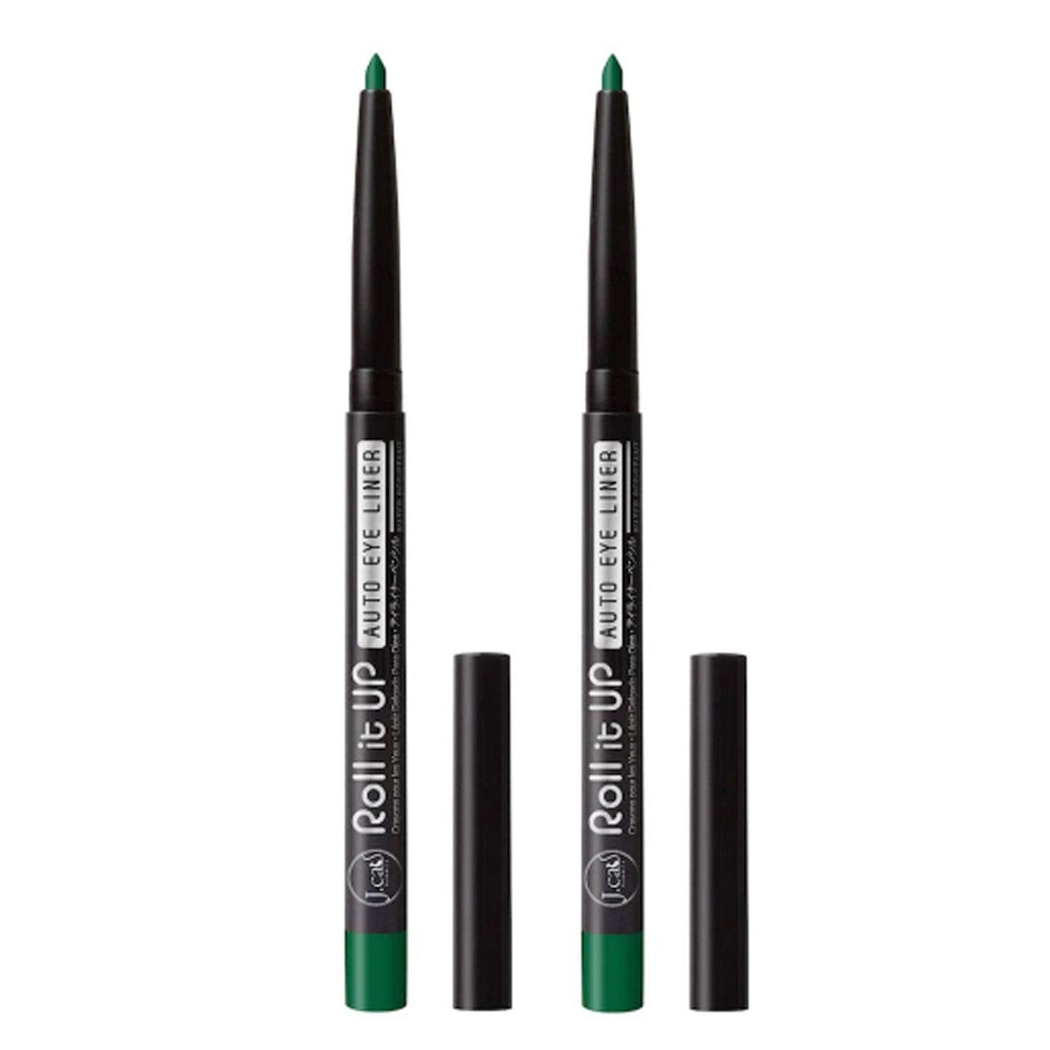 Jcat Beauty 2pcs x RAE108 Hunter Green Roll it Up Eye Liner Eyeliner Pencil + Free Zipbag + You will Receive 2 Eye Liner Pencil Crayon [ Net Wt./Poids Net. 0.01 oz / 0.3 g + WHAT IT IS : Rock and roll with J.Cat Beauty's Roll It Up Auto Eye Liner in marvelous velvety shades. Infused with coconut oils, it glides on effortlessly and smudges to a smooth haze of color. Say goodbye to mess and line your eyes with ease! Hydrates with coconut oils. Free of phthalate, triclosan, GMOs, and sulfate. + HOW TO USE : Apply this innovative, flexible formula to your upper and lower lash lines, or use you fingers to smudge into a shadow. No sharpener necessary, simply twist and apply. + PRECAUTIONS : Please read the ingredient list on the packaging of your product to be sure that the ingredients are appropriate for your personal use. + INGRIDIENTS : Kahlwax, Candelilla Wax, Microcrystalline Wax, Beeswax, 12-Hydroxy Stearic Acid, Hydrogenated Coco-Glycerides, 2-Ethylhexyl Palmitate, Bis-Diglycerylpolyacyladipate-2, Phenoxyethanol, Lecithin / Poly / Isopropyl Myristate / Polyglyceryl-3 Polyricinoleate. May Contain: Mica (CI 77019), Titanium Dioxide (CI 77891), Iron Oxides (CI 77499, CI 77491, CI 77492), Blue 1 Lake (CI 42090), Ultramarine Blue (CI 77007), Manganese Violet (CI 77742), Chrome Oxide Green (CI 77288)