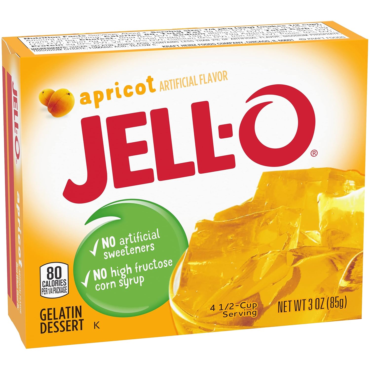 Jell-O, Gelatin Dessert, Apricot. Refreshing Apricot Taste, Only 80 Calories Per Serving; Naturally Fat-Free, Makes A Delicious Dessert; Just Add Water And Allow To Set
