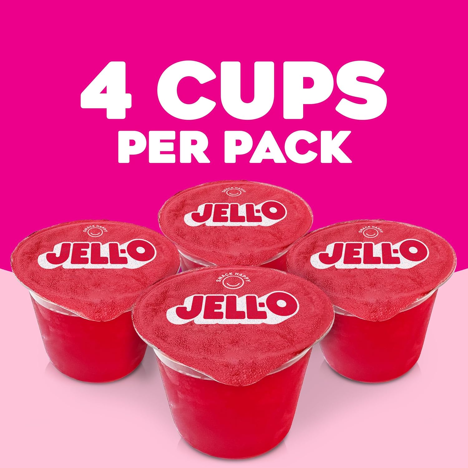 Jell-O Original Strawberry Refrigerated Red Jello Cups Gelatin Snack (4 Ct Cups)