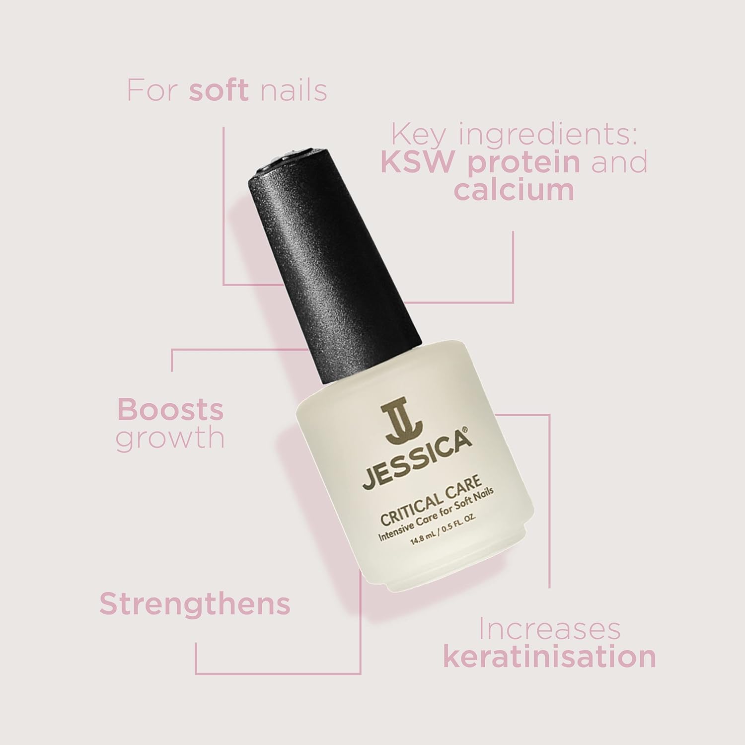 Jessica Critical Care Base Coat, Nail Varnish Strengthener, Intensive Care For Soft And Weak Nails, Enriched With Protein Ksw And Calcium, 14.8Ml