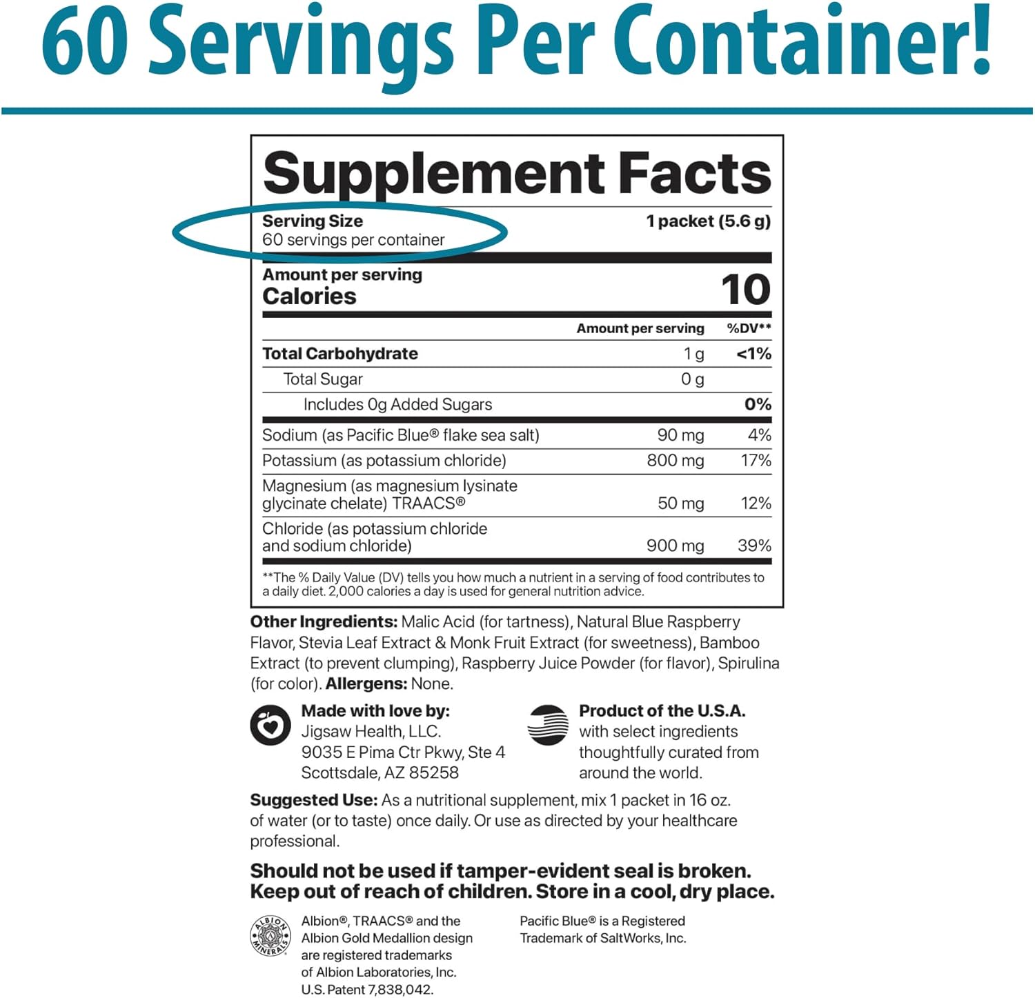 Complete Support: Includes 800mg of Potassium, 50mg of Magnesium Lysinate Glycinate Chelate, and 90mg of Sodium from Pacific Blue flake sea salt; Contains zero sugar and zero caffeine. 60 day supply