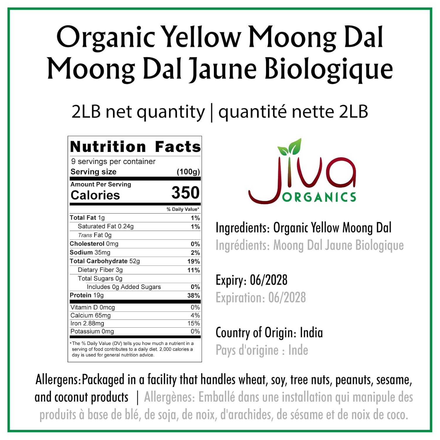About this item You will LOVE our certified USDA Organic Moong Dal Yellow (Washed) by Jiva Organics. Here's why: GREAT Source of Protein - Split Mung Beans are an excellent source of protein. A wonderful product for making ayurvedic kitchari! Organic, NON-GMO, Vegan, Raw, and Grown on a certified organic farm in India. We take great pride in choosing the finest quality lentils available. 2 Pound (32oz) value pack. Also known as Moong Dal Split Yellow or Organic Moong Dal Magar is made up of dried lentils that are split in half and deshusked. With a naturally soft texture and sweet flavor, organic Moong Dal Magar has a fast cooking time, absorbs the flavors of spices and seasonings and is easy to digest Jiva Organics donates one meal to a child in need for every pack sold. Last year, we donated over 250,000 meals with your help! See more product details, You will LOVE our certified USDA Organic Moong Dal Yellow (Washed) by Jiva Organics. Here's why:, GREAT Source of Protein - Split Mung Beans are an excellent source of protein. A wonderful product for making ayurvedic kitchari!, Organic, NON-GMO, Vegan, Raw, and Grown on a certified organic farm in India. We take great pride in choosing the finest quality lentils available, 2 Pound (32oz) value pack. Also known as Moong Dal Split Yellow or Organic Moong Dal Magar is made up of dried lentils that are split in half and deshusked. With a naturally soft texture and sweet flavor, organic Moong Dal Magar has a fast cooking time, absorbs the flavors of spices and seasonings and is easy to digest, Jiva Organics donates one meal to a child in need for every pack sold. Last year, we donated over 250,000 meals with your help!