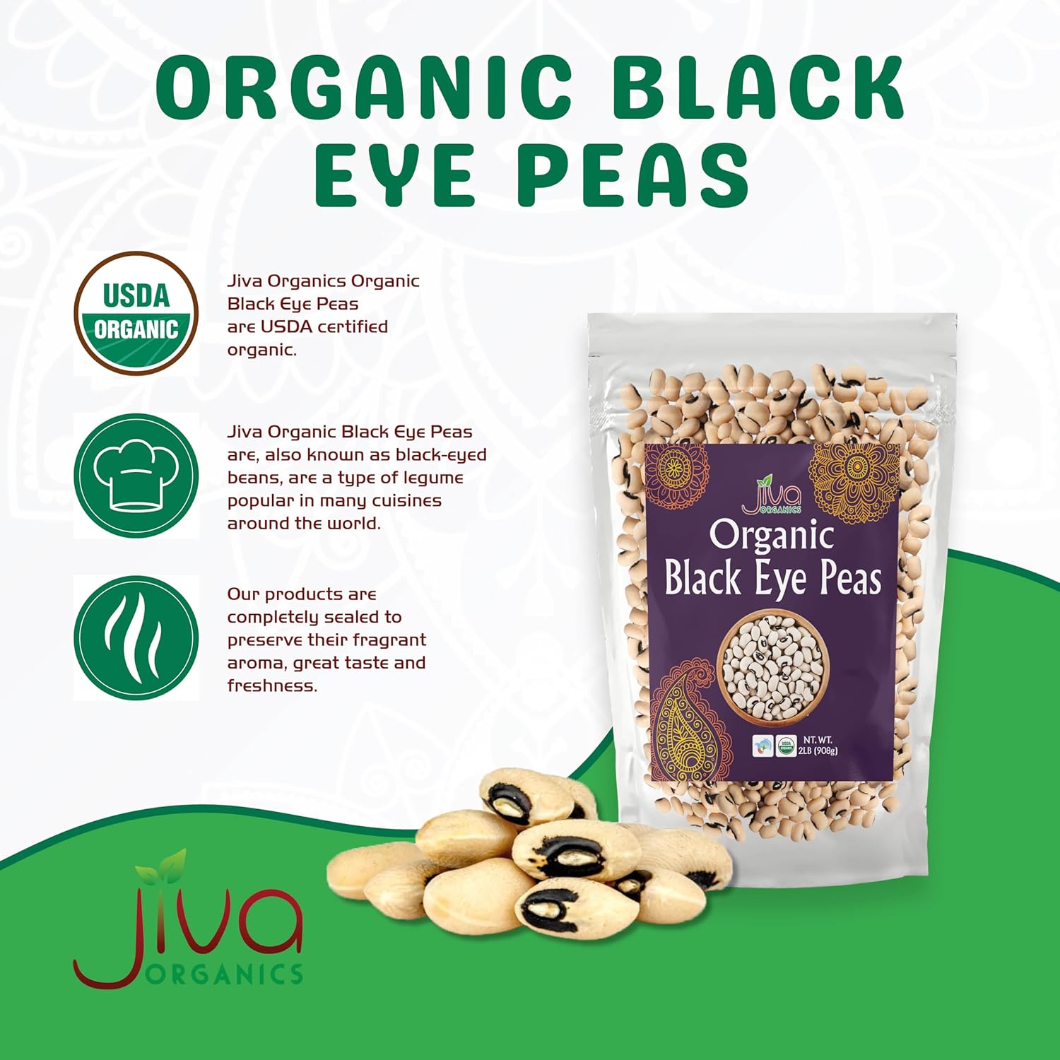 Jiva Organics Organic Black Eye Peas 2 Pound Bag - Cowpeas, Non-Gmo, Natural