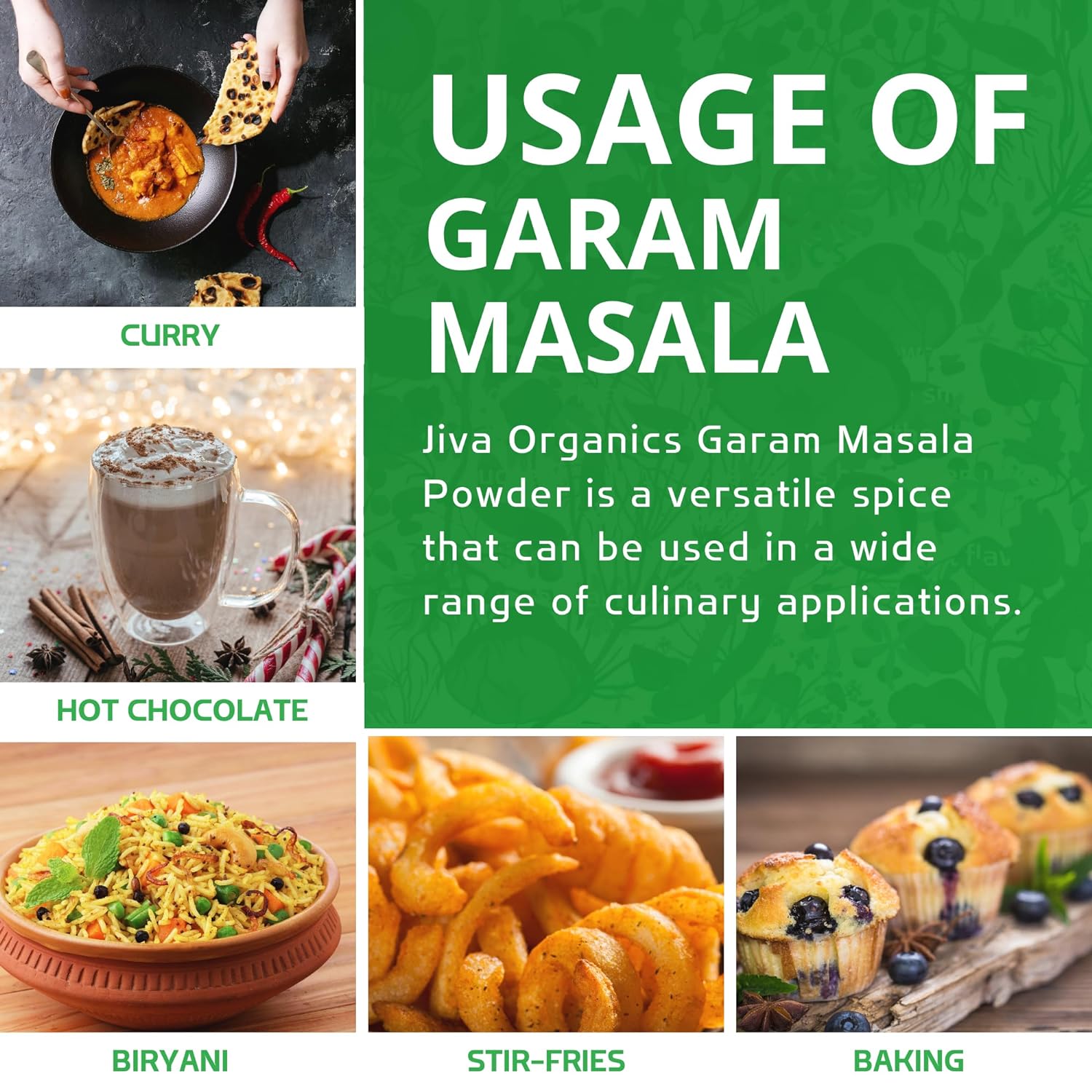 ??? THE PERFECT GARAM MASALA POWDER - Our Jiva Organics Garam Masala is made with premium quality organic spices including Cumin, Coriander, Cardamom, Black Pepper, Clove, Nutmeg, Fennel, Mace??? CERTIFIED ORGANIC - Our Garam Masala Spice is certified organic, Non-GMO, Vegan, and Salt Free!??? AUTHENTIC BLEND - we use premium high end spices like mace, nutmeg, and cardamom to give a full body of flavor!??? LARGE 7 OUNCE BAG - Our Garam Masala is sold throughout North America and offers a tremendous value compared to other brands that are not certified organic???GIVING BACK - For every pack sold, Jiva Organics donates one meal to a child in need encouraging them to attend school. We have donated over 500,000 meals with your help!