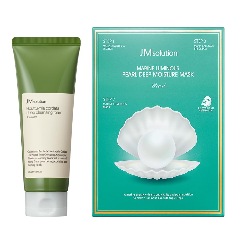 Jmsolution Skin Care Bundle- Heart Leaf Micro Cleansing Foam With Marine Moisture Facial Mask