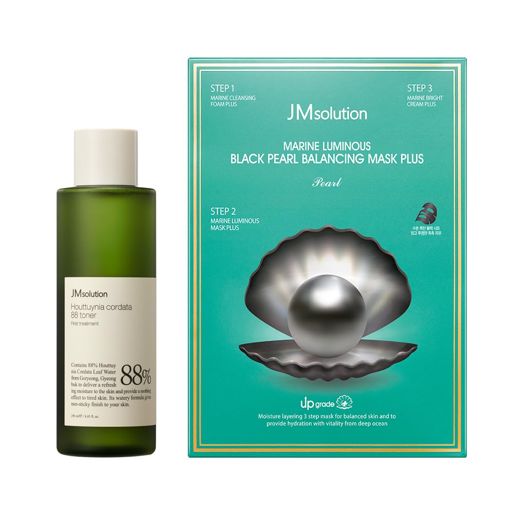 Jmsolution Skin Care Bundle- Heart Leaf Toner Black Pearl Facial Mask