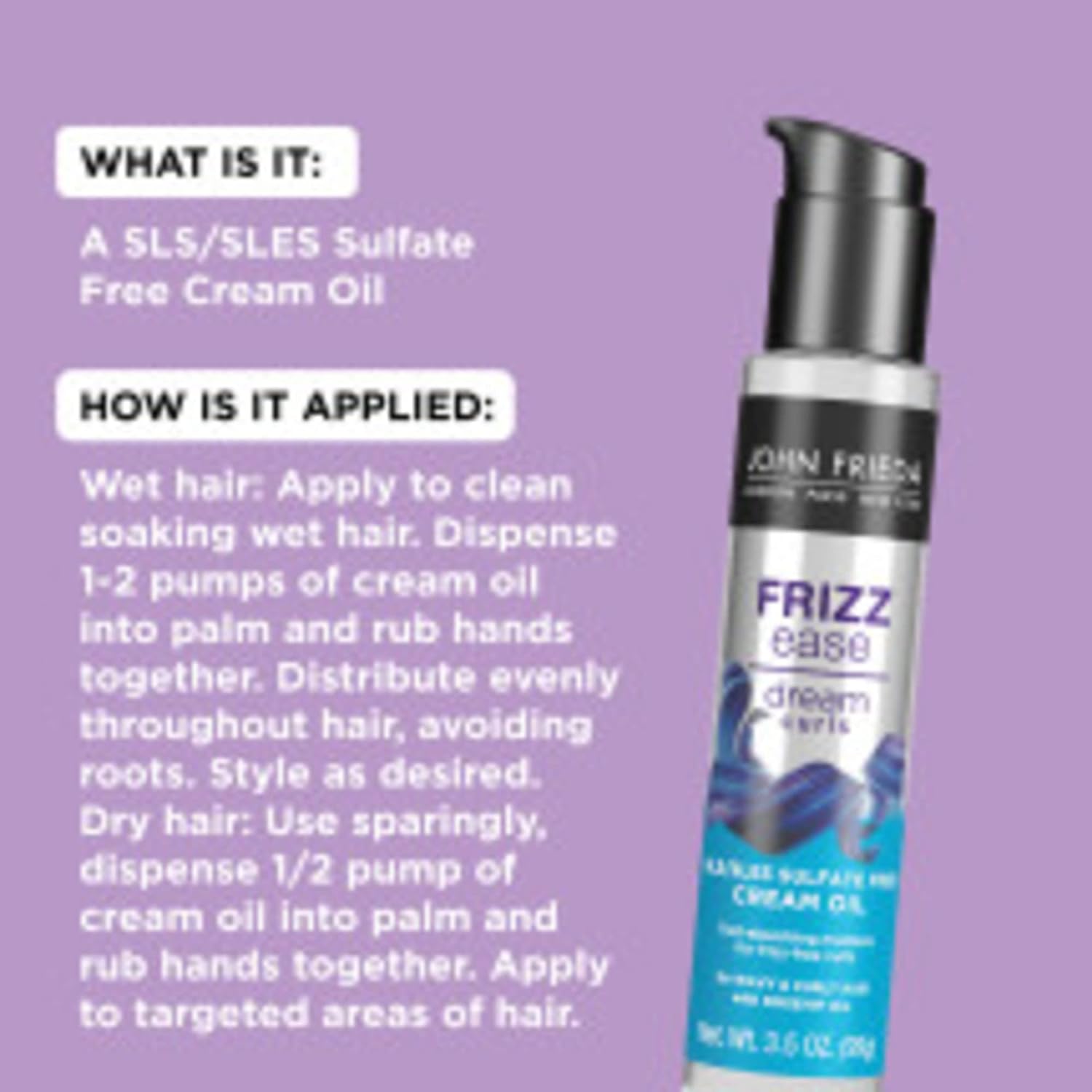 John Frieda Anti Frizz, Frizz Ease Dream Curls Cream Oil, Hydrating Hair Oil for Curly, Frizzy Hair, Nourishes Dry and Damaged Hair, for Bouncy Curls, 3.5 Fluid Ounces