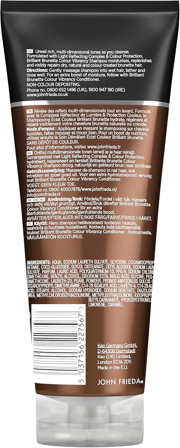 John Frieda Brilliant Brunette Colour Vibrancy Shampoo, Moisturising And Smoothing For Brown Hair, Aloe Vera, 250 Ml (Pack Of 2)