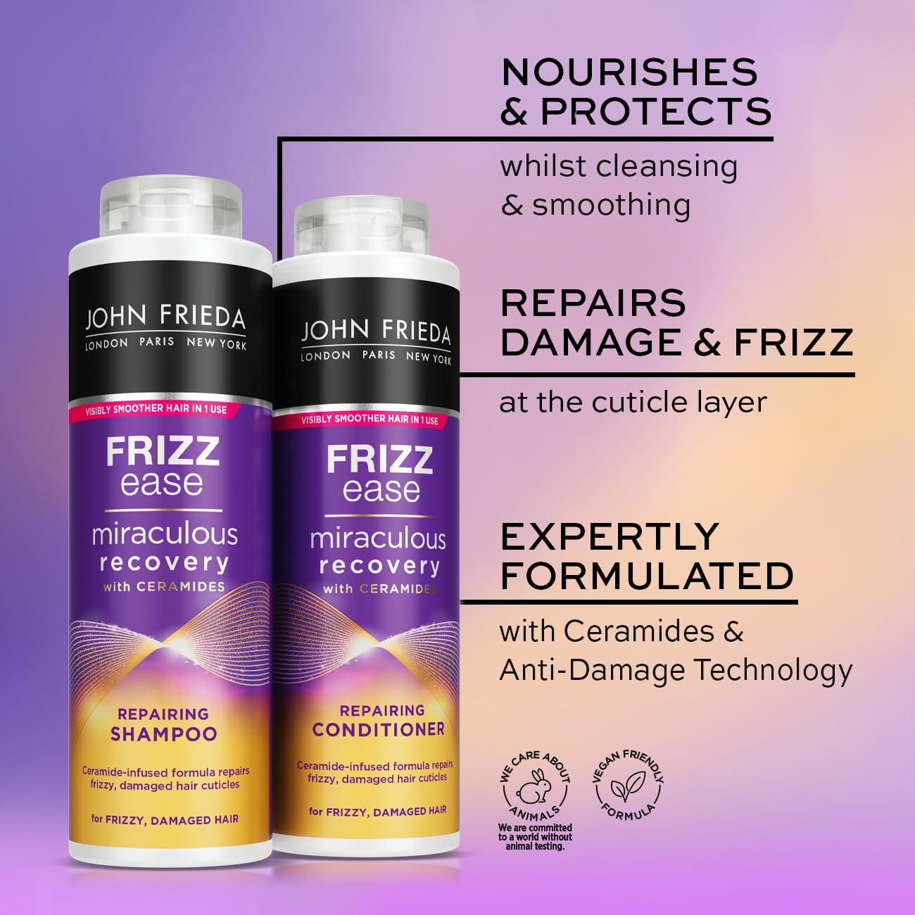 John Frieda Frizz Ease Miraculous Recovery Shampoo And Conditioner Duo Pack 2 X 500Ml, Repairing And Smoothing Shampoo And Conditioner Bundle Dry, Damaged Hair