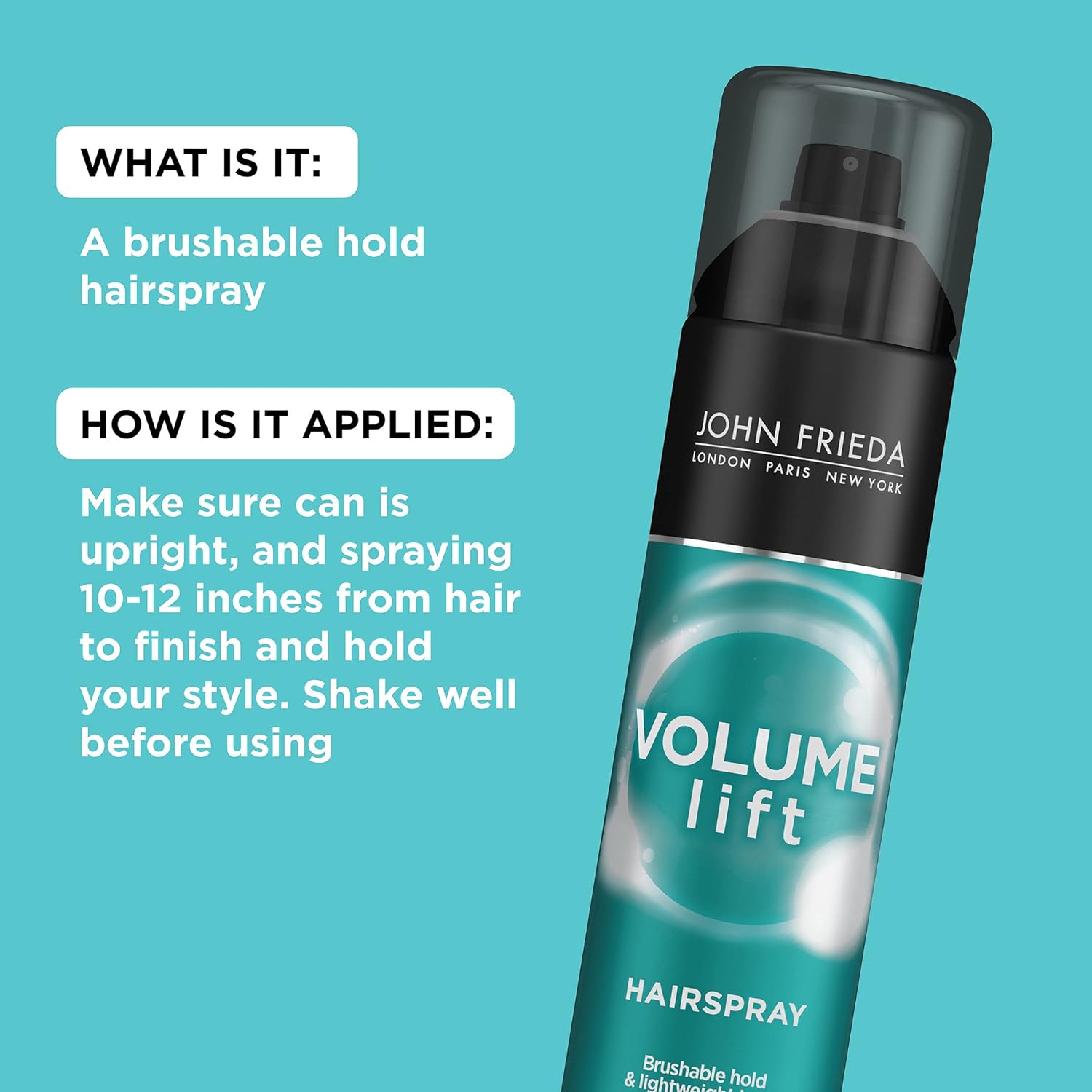 John Frieda Volume Lift Hairspray For Long-Lasting Hold & Fullness. Formulated With Air-Silk Technology, Our Ultra-Fine Mist Holds Your Volume In Place Without The Heavy Feel. Designed To Provide More Time For Shaping Your Style, Volume Creation, And Humidity Resistance. Creates A Gentle, Fine Mist For Even, All Over Coverage That Is Easy To Apply. Satisfaction Guaranteed. Limitations May Apply