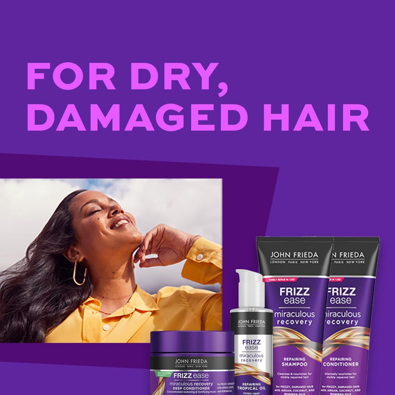 John Frieda Miraculous Recovery Conditioner 75Ml, Travel Conditioner For Dry, Damaged Hair, Mini Conditioner For Dry Hair