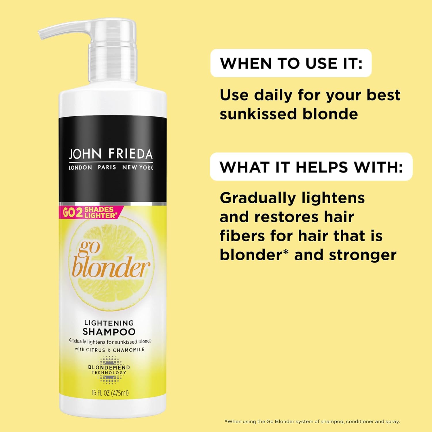 John Frieda Sheer Blonde Go Blonder Blonde Shampoo, Gradual Lightening Shampoo, With Citrus And Chamomile, Featuring Our Blondmend Technology, 16 Oz