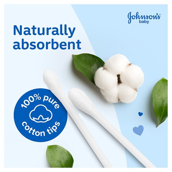 JOHNSON'S® baby cotton buds are designed to clean delicate & difficult to reach areas. Naturally absorbent with 100% pure cotton tips & 100% paper sticks