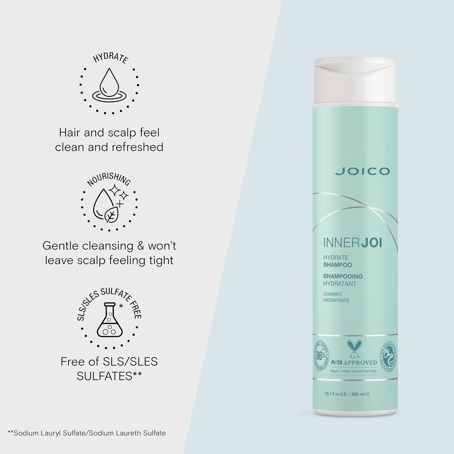 Joico Innerjoi Hydrate Shampoo | For Dry Hair & Scalp | Sulfate & Paraben Free | Naturally-Derived Vegan Formula