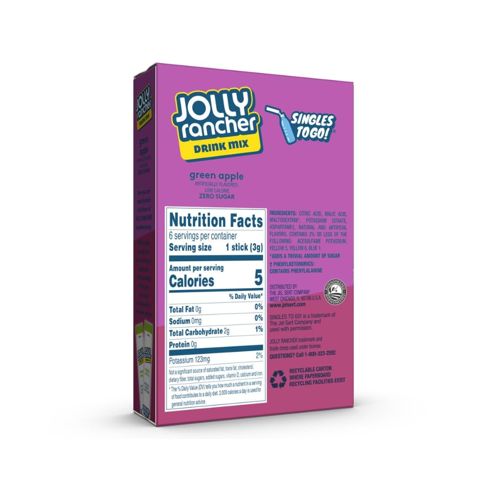 When You’Re Craving A Kick Of Flavor But Don’T Want To Reach For A Sugar-Filled Beverage, Add A Jolly Rancher Singles To Go Drink Mix To Your Water. The Rich Jolly Rancher Flavor Turns Ordinary Water Into An Extraordinary Taste Experience. Perfect For Any Occasion, Jolly Rancher Singles To Go Powdered Water Enhancer Adds A Tasteful Twist To Kids’ Lunches, Car Rides, Sporting Events, Summer Picnics, And The List Goes On. Their Size Makes Them Easily Packable And Extremely Convenient. Low Calorie And Sugar And Caffeine Free, They Fit Into Most Lifestyles So Water Can Be Refreshing And Bursting With Bold Fruit Flavor. Give Your Taste Buds What They Crave And Make Your Water Taste Like Your Favorite Hard Candy