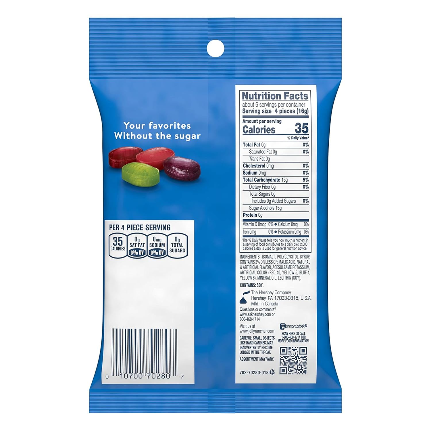 A Mix Of Four Fruity Favorites For The Whole Family In Just One Bag Of Hard Candy You Wouldn'T Have Thought It Possible If You Didn'T Know Jolly Rancher Candy. This Bag Of Sugar-Free, Individually Wrapped Fruit-Flavored Hard Candy Will Keep Each Delicious Piece Fresh Until It'S Time For A New Bag. Featuring Raspberry, Apple, Grape And Watermelon Flavors, Jolly Rancher Zero Sugar Hard Candy Offers A Combination Of The Undisputed Classics You Know And Love With A Sugar- And Aspartame-Free Twist. Keep A Bag With You On The Go To Share With Friends, Co-Workers And Family Members Throughout The Day โ But Don'T Forget To Save Some For Yourself During All That Sharing! These Fruit Candies Make The Perfect Candy Bowl Display All Year Thanks To Vibrant Colors And Attractive Jolly Rancher Wrappers. They'Re Also Great Sugar-Free Treats For Holiday Stockings, Easter Baskets, Valentine'S Day Party Favors And Halloween Trick-Or-Treat Bags. If You Want A Small Candy With A Big Taste To Keep Your Taste Buds Busy During Movie Nights, Lunch Breaks And Snack Breaks, Jolly Rancher Zero Sugar Hard Candy Is The Treat For You