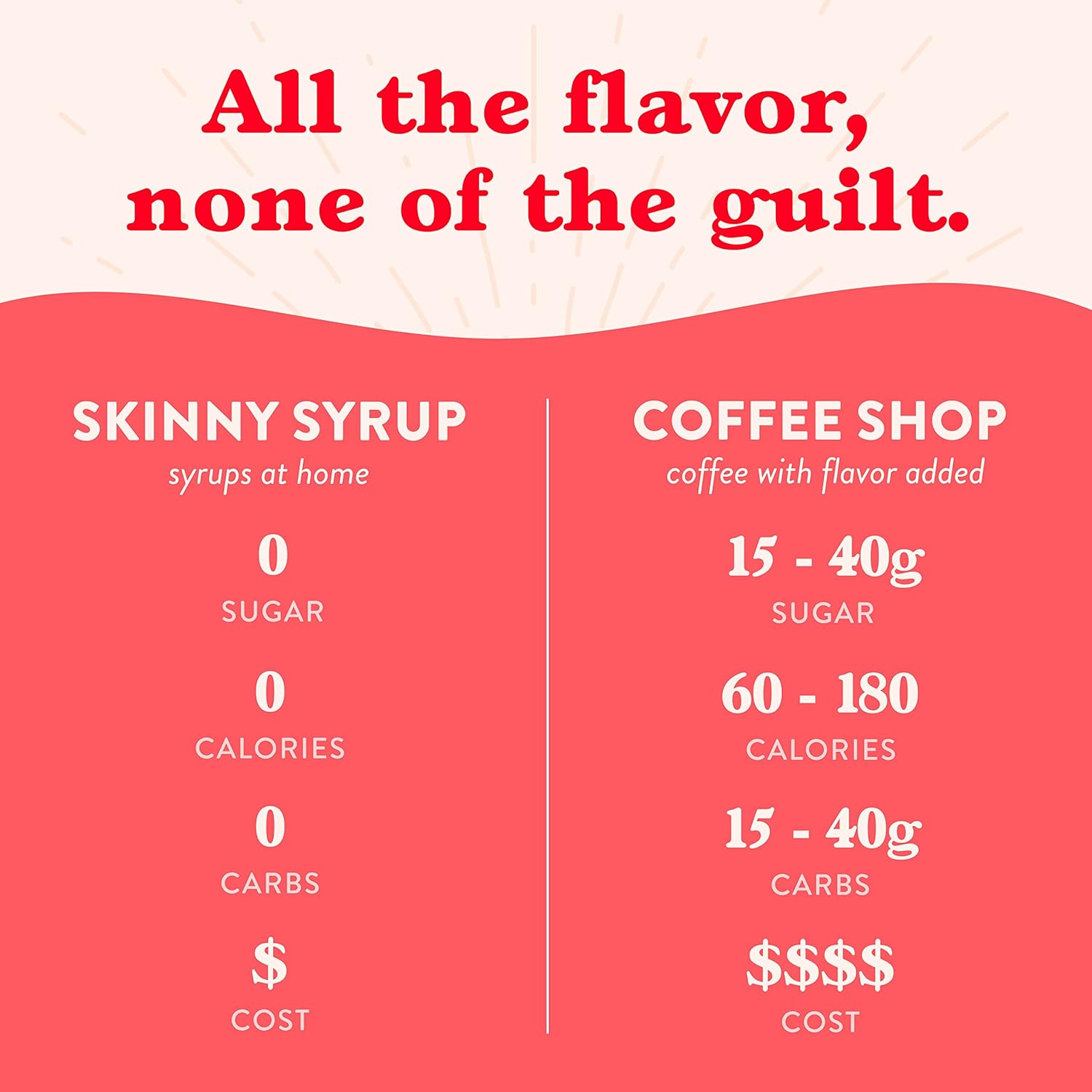 Skinny Syrup: Make Your Favorite Beverages Taste Delicious, But Without The Guilt. This Flavored Syrup Contains Zero Sugar, Zero Calories, And Zero Carbs. 25 Servings Per Bottle
