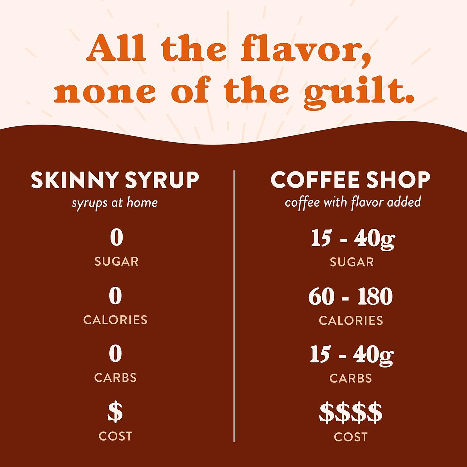 Skinny Coffee Syrup: Make Your Favorite Beverages Taste Indulgent, But Without The Guilt. This Coffee Syrup Contains Zero Sugar, Zero Calories, And Zero Carbs. 25 Servings Per Bottle
