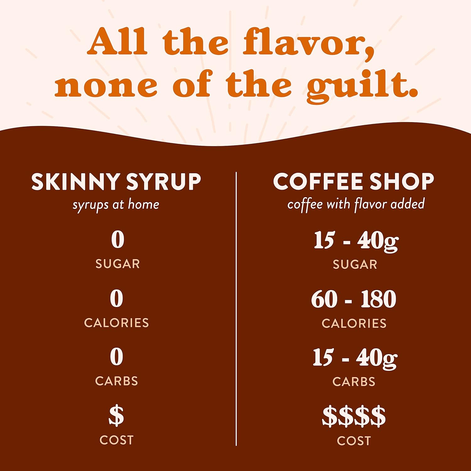 Skinny Coffee Syrup: Make Your Favorite Beverages Taste Indulgent, But Without The Guilt. This Coffee Syrup Contains Zero Sugar, Zero Calories, And Zero Carbs. 25 Servings Per Bottle