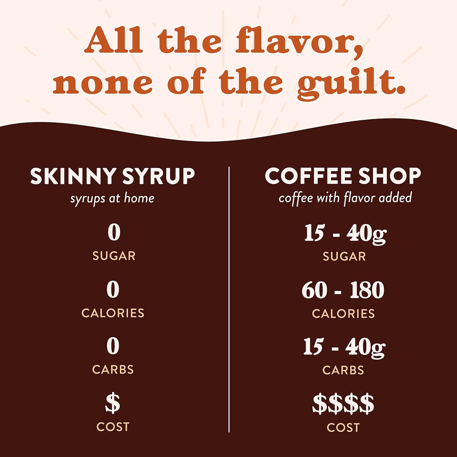 Skinny Coffee Syrup: Make Your Favorite Beverages Taste Indulgent, But Without The Guilt. This Coffee Syrup Contains Zero Sugar, Zero Calories, And Zero Carbs. 25 Servings Per Bottle