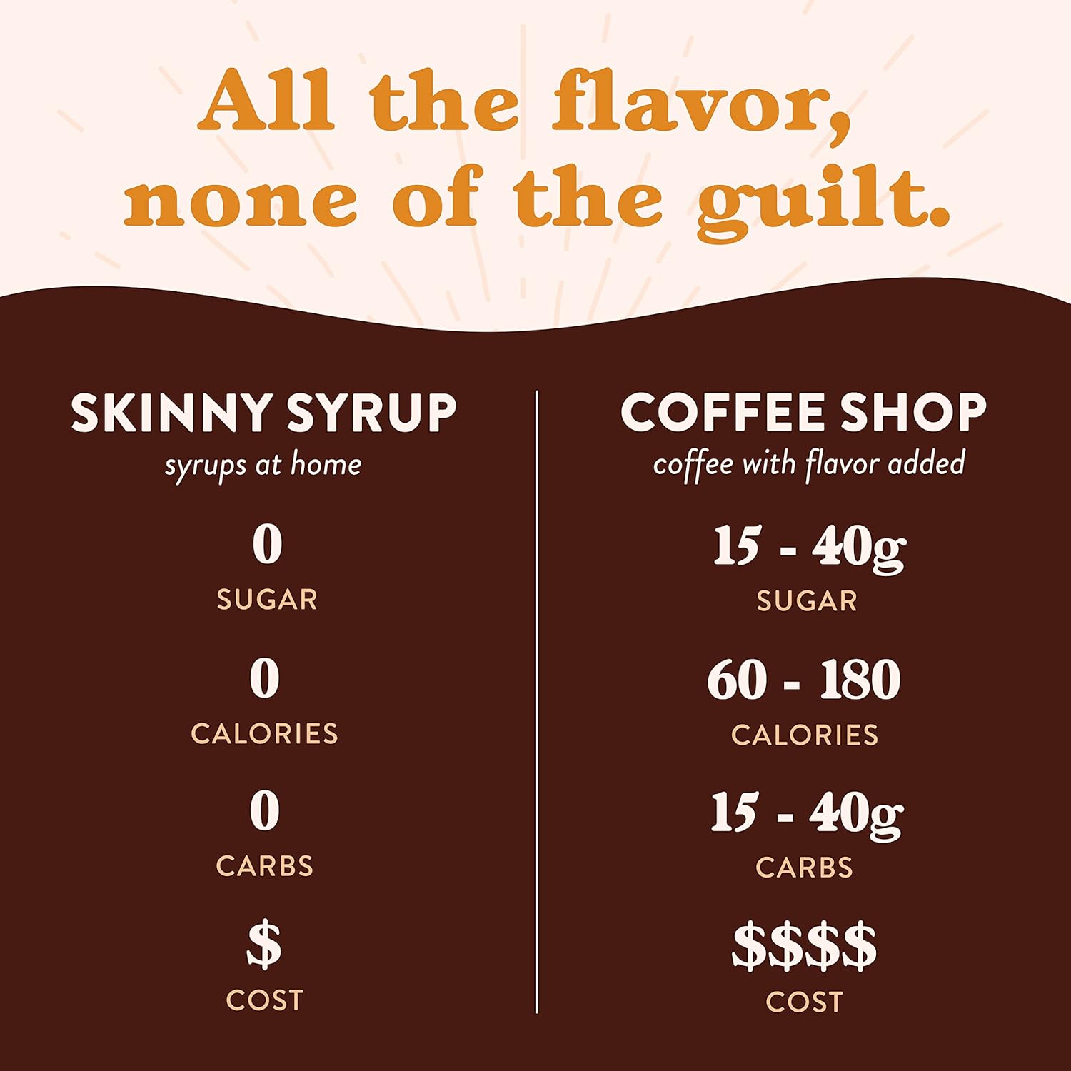 Skinny Coffee Syrup: Make Your Favorite Beverages Taste Indulgent, But Without The Guilt. This Coffee Syrup Contains Zero Sugar, Zero Calories, And Zero Carbs. 25 Servings Per Bottle