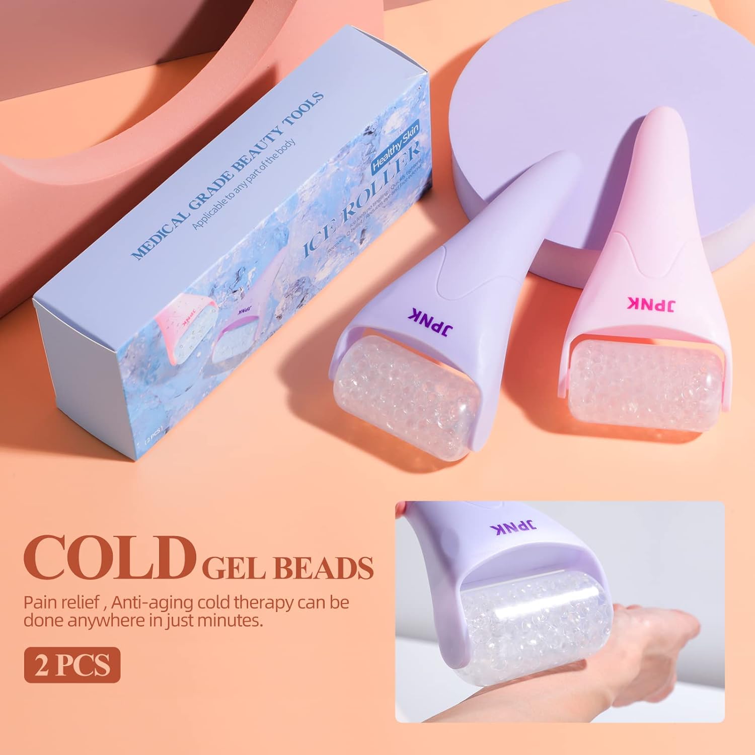 JPNK 2PCS Ice Roller for Face & Eye Plus Extra Head - Cold Facial Skincare Massager for Eye Puffiness, Pain and Migraine Relief for Women